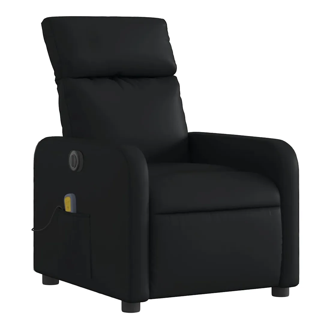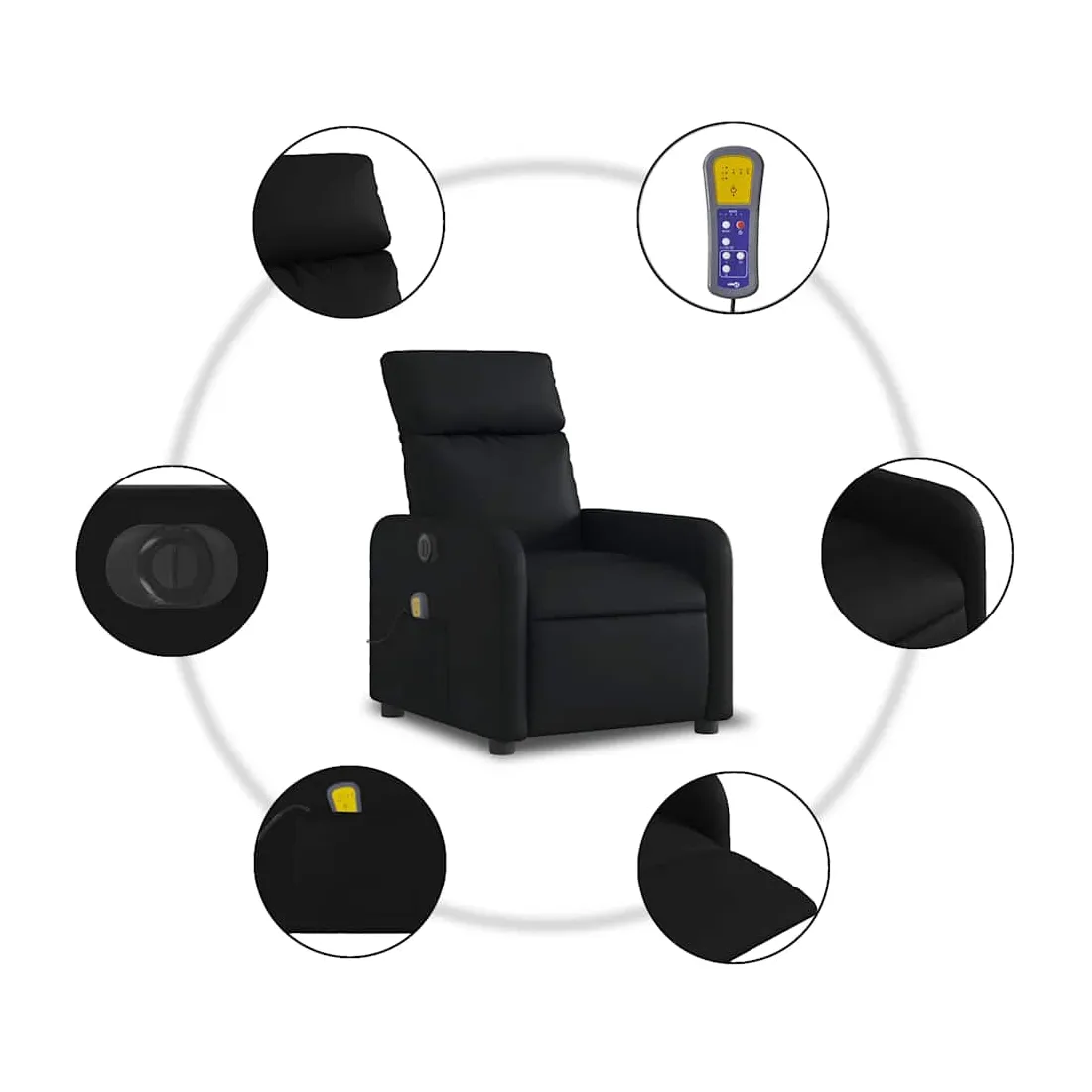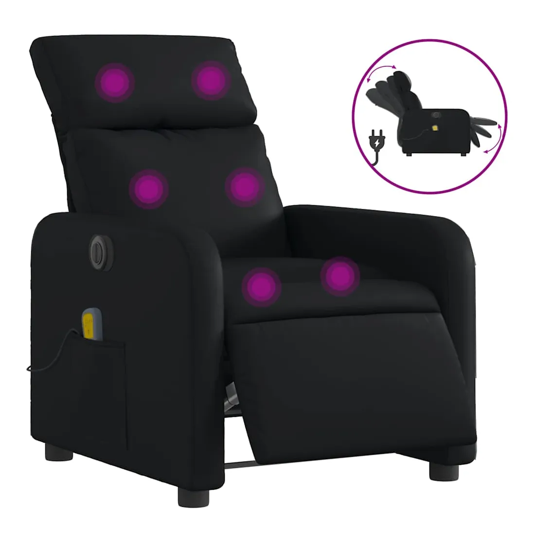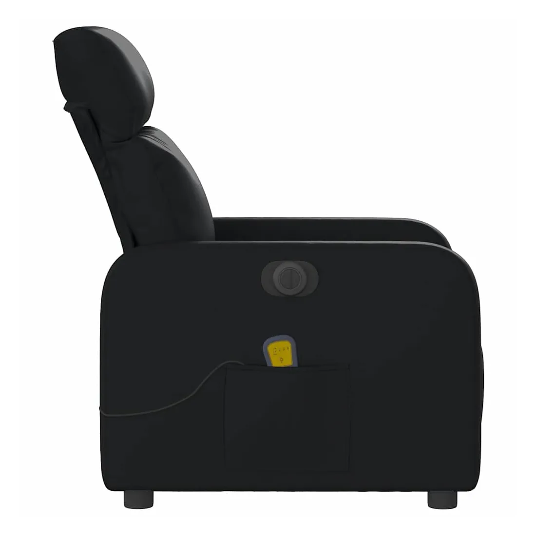 Asseyez-vous et détendez-vous dans ce fauteuil inclinable de massage électrique très confortable ! Fonction d'inclinaison électrique : ce fauteuil inclinable est équipé d'un moteur électrique qui permet de régler automatiquement le repose-pied et le dossier dans n'importe quelle position, selon votre confort, en appuyant simplement sur le bouton situé sur le côté du fauteuil. Cette fonction permet une inclinaison maximale de 135 degrés. En outre, le dossier peut revenir automatiquement à sa position d'origine par une simple pression sur le bouton.Fonction de vibration : les 6 points de massage vous permettent de faire l'expérience d'un massage mieux ciblé. De plus, la télécommande incluse vous permet de choisir différents programmes de massage. La fonction de massage est alimentée par le connecteur USB qui nécessite une source d'alimentation USB certifiée de 5 V (non fournie).Expérience de siège confortable : le siège, le dossier et les larges accoudoirs rembourrés épais recouverts de similicuir procurent une sensation confortable, vous faisant vous sentir enlacé lorsque vous êtes assis. Le similicuir est un matériau très résistant. Il est résistant aux taches, ce qui le rend facile à nettoyer avec un chiffon humide. La surface lisse donne également un aspect luxueux et la beauté du cuir véritable.Poche latérale pratique : ce fauteuil est doté d'une poche latérale pour vous permettre de garder vos objets essentiels à portée de main.Cadre solide et stable : le cadre en bois et en métal offre une structure solide et une grande stabilité. Ce fauteuil inclinable est confortable et durable.