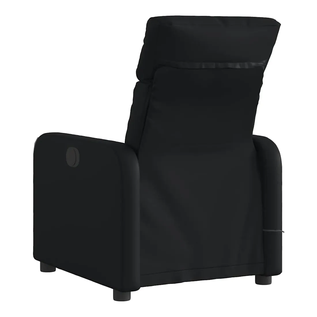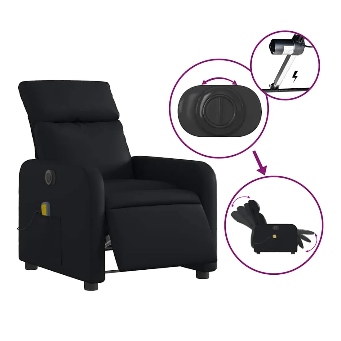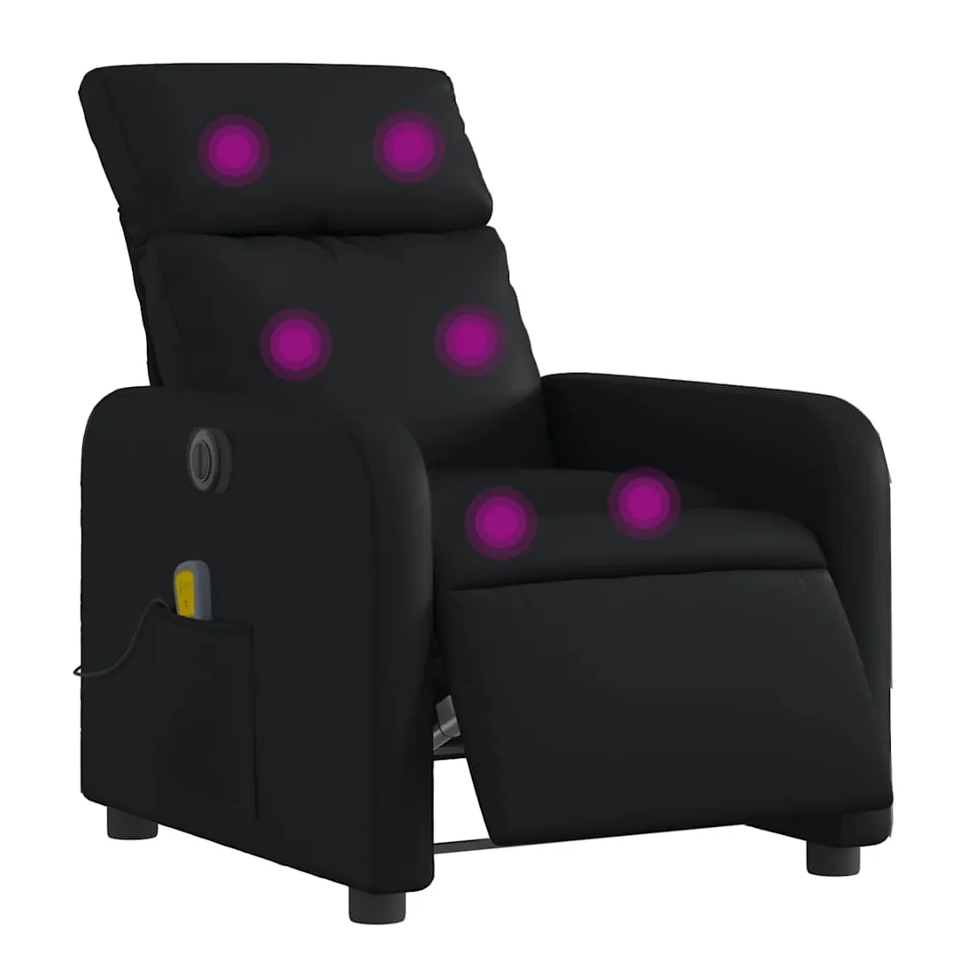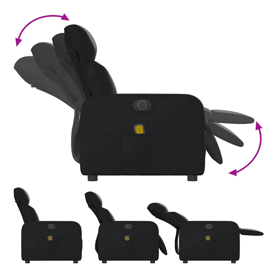 Asseyez-vous et détendez-vous dans ce fauteuil inclinable de massage électrique très confortable ! Fonction d'inclinaison électrique : ce fauteuil inclinable est équipé d'un moteur électrique qui permet de régler automatiquement le repose-pied et le dossier dans n'importe quelle position, selon votre confort, en appuyant simplement sur le bouton situé sur le côté du fauteuil. Cette fonction permet une inclinaison maximale de 135 degrés. En outre, le dossier peut revenir automatiquement à sa position d'origine par une simple pression sur le bouton.Fonction de vibration : les 6 points de massage vous permettent de faire l'expérience d'un massage mieux ciblé. De plus, la télécommande incluse vous permet de choisir différents programmes de massage. La fonction de massage est alimentée par le connecteur USB qui nécessite une source d'alimentation USB certifiée de 5 V (non fournie).Expérience de siège confortable : le siège, le dossier et les larges accoudoirs rembourrés épais recouverts de similicuir procurent une sensation confortable, vous faisant vous sentir enlacé lorsque vous êtes assis. Le similicuir est un matériau très résistant. Il est résistant aux taches, ce qui le rend facile à nettoyer avec un chiffon humide. La surface lisse donne également un aspect luxueux et la beauté du cuir véritable.Poche latérale pratique : ce fauteuil est doté d'une poche latérale pour vous permettre de garder vos objets essentiels à portée de main.Cadre solide et stable : le cadre en bois et en métal offre une structure solide et une grande stabilité. Ce fauteuil inclinable est confortable et durable.