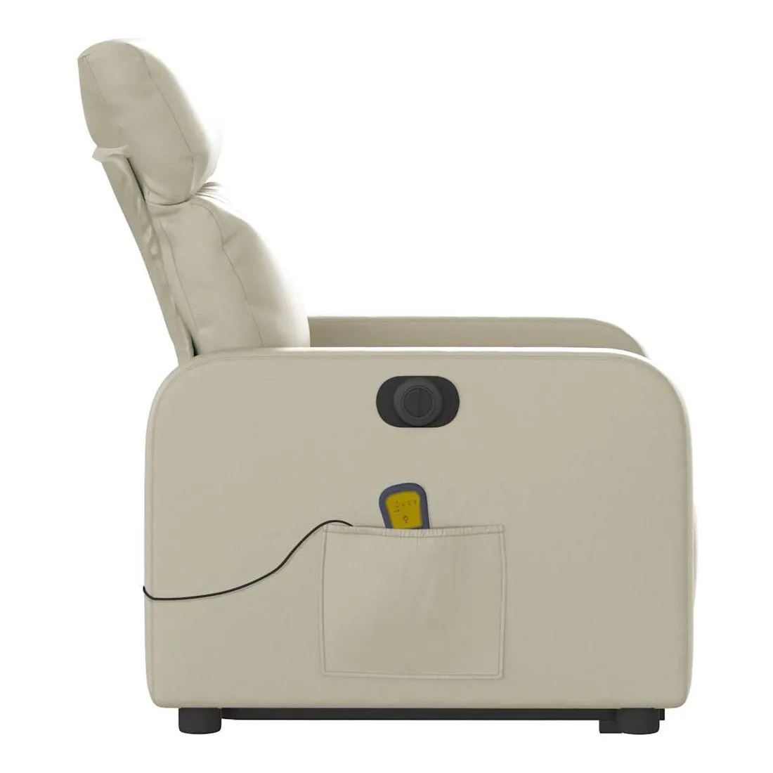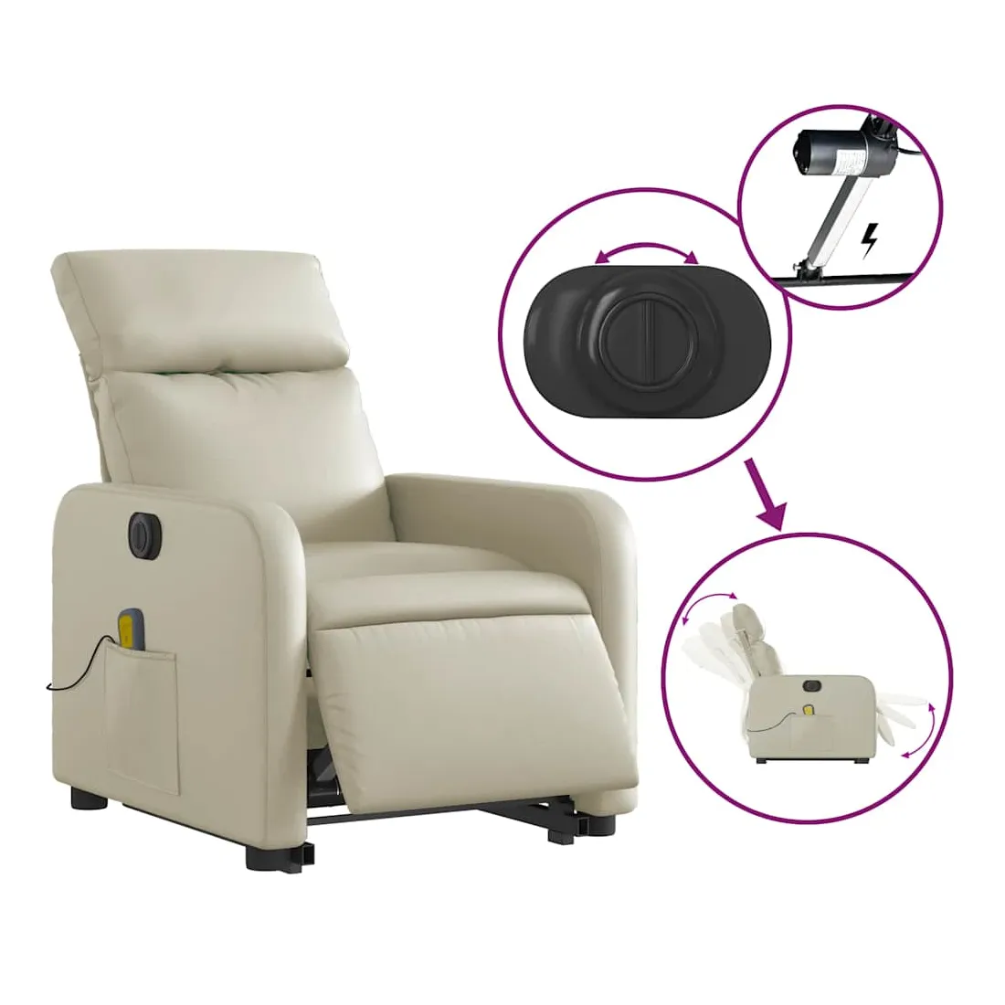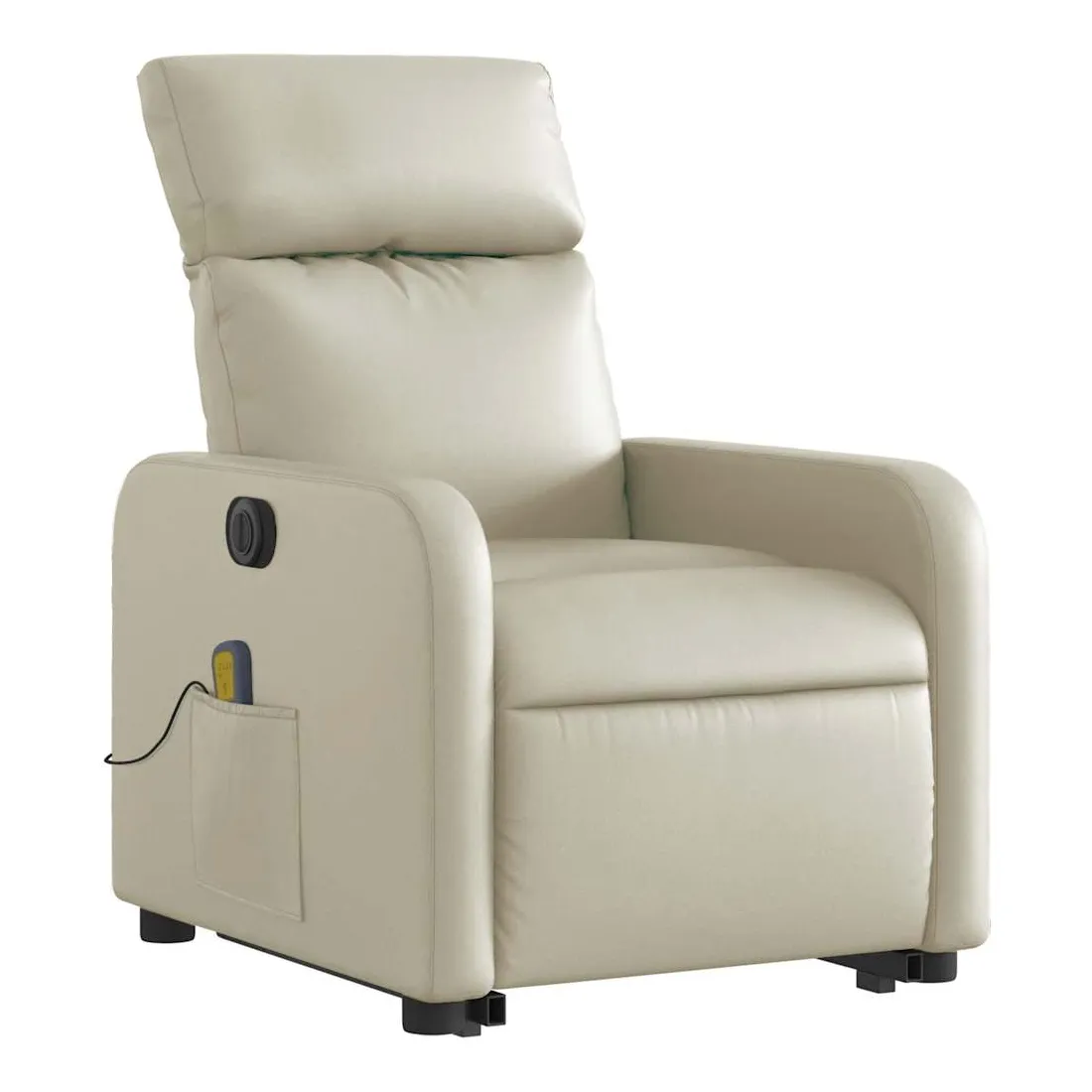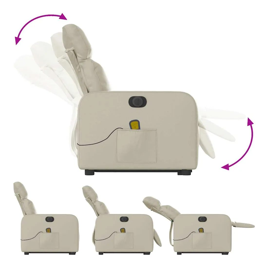Asseyez-vous et détendez-vous dans ce fauteuil inclinable de massage électrique très confortable ! Fonction de levage électrique : ce fauteuil inclinable pour personnes âgées est équipé d'un moteur électrique pour la fonction de levage. Grâce à la fonction qui pousse toute la chaise vers le haut, vous pouvez facilement vous tenir debout sans stresser votre dos et vos genoux en appuyant simplement sur le bouton.Fonction d'inclinaison électrique : ce fauteuil inclinable est également équipé d'un moteur électrique qui permet de régler automatiquement le repose-pied et le dossier dans n'importe quelle position, selon votre confort, en appuyant simplement sur le bouton situé sur le côté du fauteuil. Cette fonction permet une inclinaison maximale de 135 degrés. En outre, le dossier peut revenir automatiquement à sa position d'origine par une simple pression sur le bouton.Fonction de vibration : les 6 points de massage vous permettent de faire l'expérience d'un massage mieux ciblé. De plus, la télécommande incluse vous permet de choisir différents programmes de massage. La fonction de massage est alimentée par le connecteur USB qui nécessite une source d'alimentation USB certifiée de 5 V (non fournie).Expérience de siège confortable : le siège, le dossier et les larges accoudoirs rembourrés épais recouverts de similicuir procurent une sensation confortable, vous faisant vous sentir enlacé lorsque vous êtes assis. Le similicuir est un matériau très résistant. Il est résistant aux taches, ce qui le rend facile à nettoyer avec un chiffon humide. La surface lisse donne également un aspect luxueux et la beauté du cuir véritable.Poche latérale pratique : ce fauteuil est doté d'une poche latérale pour vous permettre de garder vos objets essentiels à portée de main.Cadre solide et stable : le cadre en bois et en métal offre une structure solide et une grande stabilité. Ce fauteuil inclinable est confortable et durable.