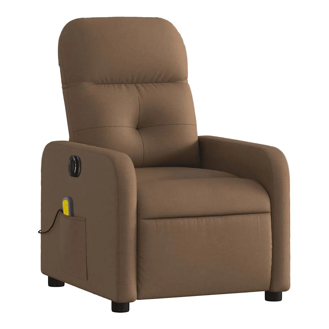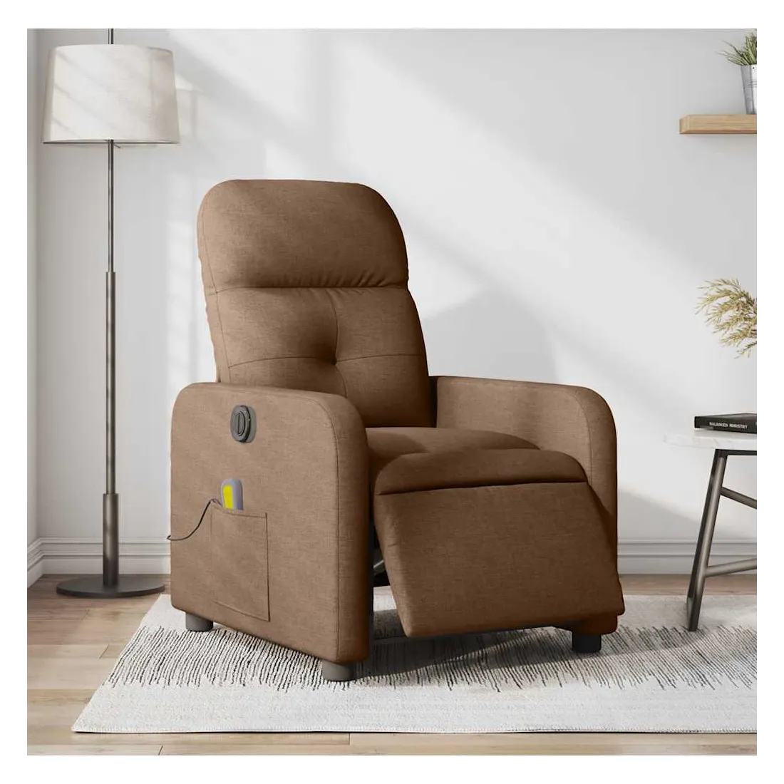 Asseyez-vous et détendez-vous dans ce fauteuil inclinable de massage électrique très confortable ! Fonction d'inclinaison électrique : ce fauteuil inclinable est équipé d'un moteur électrique qui permet de régler automatiquement le repose-pied et le dossier dans n'importe quelle position, selon votre confort, en appuyant simplement sur le bouton situé sur le côté du fauteuil. Cette fonction permet une inclinaison maximale de 135 degrés. En outre, le dossier peut revenir automatiquement à sa position d'origine par une simple pression sur le bouton.Fonction de vibration : les 6 points de massage vous permettent de faire l'expérience d'un massage mieux ciblé. De plus, la télécommande incluse vous permet de choisir différents programmes de massage. La fonction de massage est alimentée par le connecteur USB qui nécessite une source d'alimentation USB certifiée de 5 V (non fournie).Expérience d'assise confortable : le siège, le dossier et les larges accoudoirs bien rembourrés recouverts de tissu procurent une sensation confortable et chaleureuse, vous permettant de vous sentir enveloppé lorsque vous êtes assis. Le tissu présente un aspect simple et épuré et est respirant et durable.Poche latérale pratique : ce fauteuil est doté d'une poche latérale pour ranger votre télécommande ou garder vos objets essentiels à portée de main.Cadre solide et stable : le cadre en bois et en métal offre une structure solide et une grande stabilité. Ce fauteuil inclinable est confortable et durable.