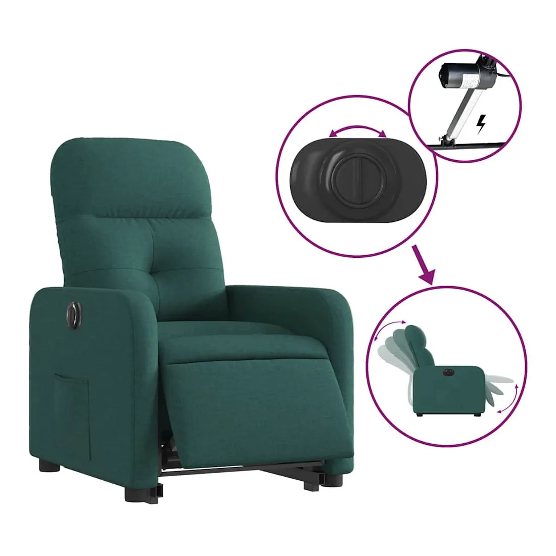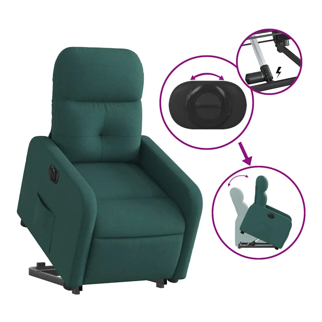 Asseyez-vous et détendez-vous dans ce fauteuil inclinable électrique très confortable ! Fonction de levage électrique : ce fauteuil inclinable pour personnes âgées est équipé d'un moteur électrique pour la fonction de levage. Grâce à la fonction qui pousse toute la chaise vers le haut, vous pouvez facilement vous tenir debout sans stresser votre dos et vos genoux en appuyant simplement sur le bouton.Fonction d'inclinaison électrique : ce fauteuil inclinable est également équipé d'un moteur électrique qui permet de régler automatiquement le repose-pied et le dossier dans n'importe quelle position, selon votre confort, en appuyant simplement sur le bouton situé sur le côté du fauteuil. Cette fonction permet une inclinaison maximale de 135 degrés. En outre, le dossier peut revenir automatiquement à sa position d'origine par une simple pression sur le bouton.Expérience d'assise confortable : le siège, le dossier et les larges accoudoirs bien rembourrés recouverts de tissu procurent une sensation confortable et chaleureuse, vous permettant de vous sentir enveloppé lorsque vous êtes assis. Le tissu présente un aspect simple et épuré et est respirant et durable.Poche latérale pratique : ce fauteuil est doté d'une poche latérale pour vous permettre de garder vos objets essentiels à portée de main.Cadre solide et stable : le cadre en bois et en métal offre une structure solide et une grande stabilité. Ce fauteuil inclinable est confortable et durable.