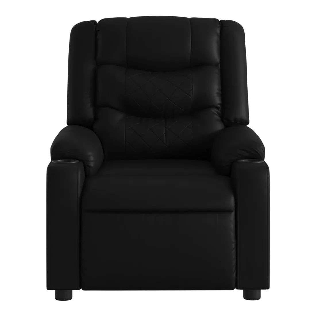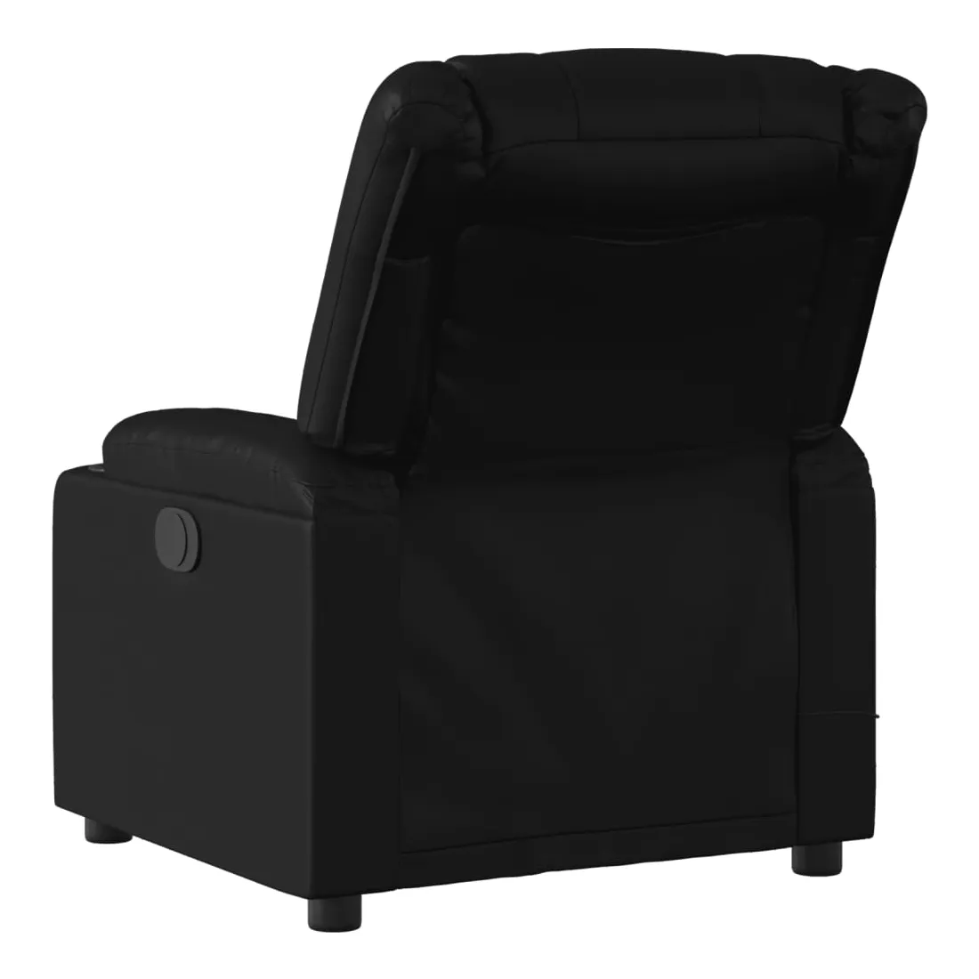 Asseyez-vous et détendez-vous dans ce fauteuil inclinable de massage très confortable ! Fonction d'inclinaison manuelle : ce fauteuil inclinable est doté d'une poignée du côté droit. Vous pouvez régler manuellement le repose-pieds et le dossier dans n'importe quelle position selon votre confort en tirant simplement sur la poignée. Cette fonction permet une inclinaison maximale de 135 degrés. De plus, le dossier peut revenir rapidement à sa position d'origine en tirant simplement sur la poignée.Fonction de vibration : les 6 points de massage vous permettent de faire l'expérience d'un massage mieux ciblé. De plus, la télécommande incluse vous permet de choisir différents programmes de massage. La fonction de massage est alimentée par le connecteur USB, mais la source d'alimentation USB 5V certifiée n'est pas incluse.Expérience de siège confortable : le siège, le dossier et les larges accoudoirs rembourrés épais recouverts de similicuir procurent une sensation confortable, vous faisant vous sentir enlacé lorsque vous êtes assis. Le similicuir est un matériau très résistant. Il est résistant aux taches, ce qui le rend facile à nettoyer avec un chiffon humide. La surface lisse donne également un aspect luxueux et la beauté du cuir véritable.Porte-gobelets et poche latérale pratiques : ce fauteuil dispose de deux porte-gobelets pratiques pour vos boissons et d'une poche latérale pour votre télécommande ou pour garder vos objets essentiels à portée de main.Cadre solide et stable : le cadre en bois et en métal offre une structure solide et une grande stabilité. Ce fauteuil inclinable est confortable et durable.