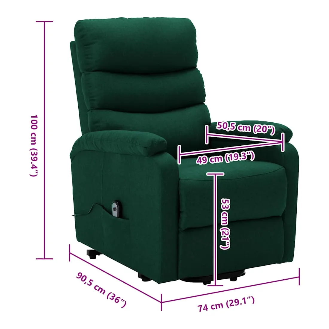 Asseyez-vous et détendez-vous dans ce fauteuil très confortable ! Fonction d'inclinaison manuelle : le fauteuil inclinable est spécialement conçu avec 3 positions d'inclinaison afin que vous puissiez régler manuellement le dossier et le repose-pieds selon votre confort.Fonction de levage électrique : ce fauteuil inclinable pour personnes âgées est équipé d'un moteur électrique pour la fonction de levage. Grâce à la fonction qui pousse toute la chaise vers le haut, vous pouvez facilement vous tenir debout sans stresser votre dos et vos genoux grâce à la commande manuelle à 2 boutons.Expérience d'assise confortable : le siège, le dossier et les larges accoudoirs rembourrés épais recouverts de tissu procurent une sensation confortable et chaleureuse, vous permettant de vous sentir enveloppé lorsque vous êtes assis. Le tissu présente un aspect simple et épuré, et est respirant et durable.Cadre solide et stable : le cadre en bois et en métal offre une structure solide et une grande stabilité. Ce fauteuil inclinable est confortable et durable.