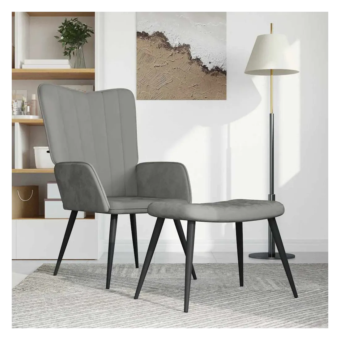 Cette chaise de relaxation avec repose-pied est un excellent supplément à votre décor existant. Ce fauteuil, avec quelques lignes sur son dossier, est esthétique. Grâce à sa mousse capitonnée recouverte de velours doux au toucher, vous pourrez profiter d'un confort optimal pendant votre temps d'assise. Soutenu par un cadre en acier, le fauteuil de relaxation avec repose-pied est stable et durable.