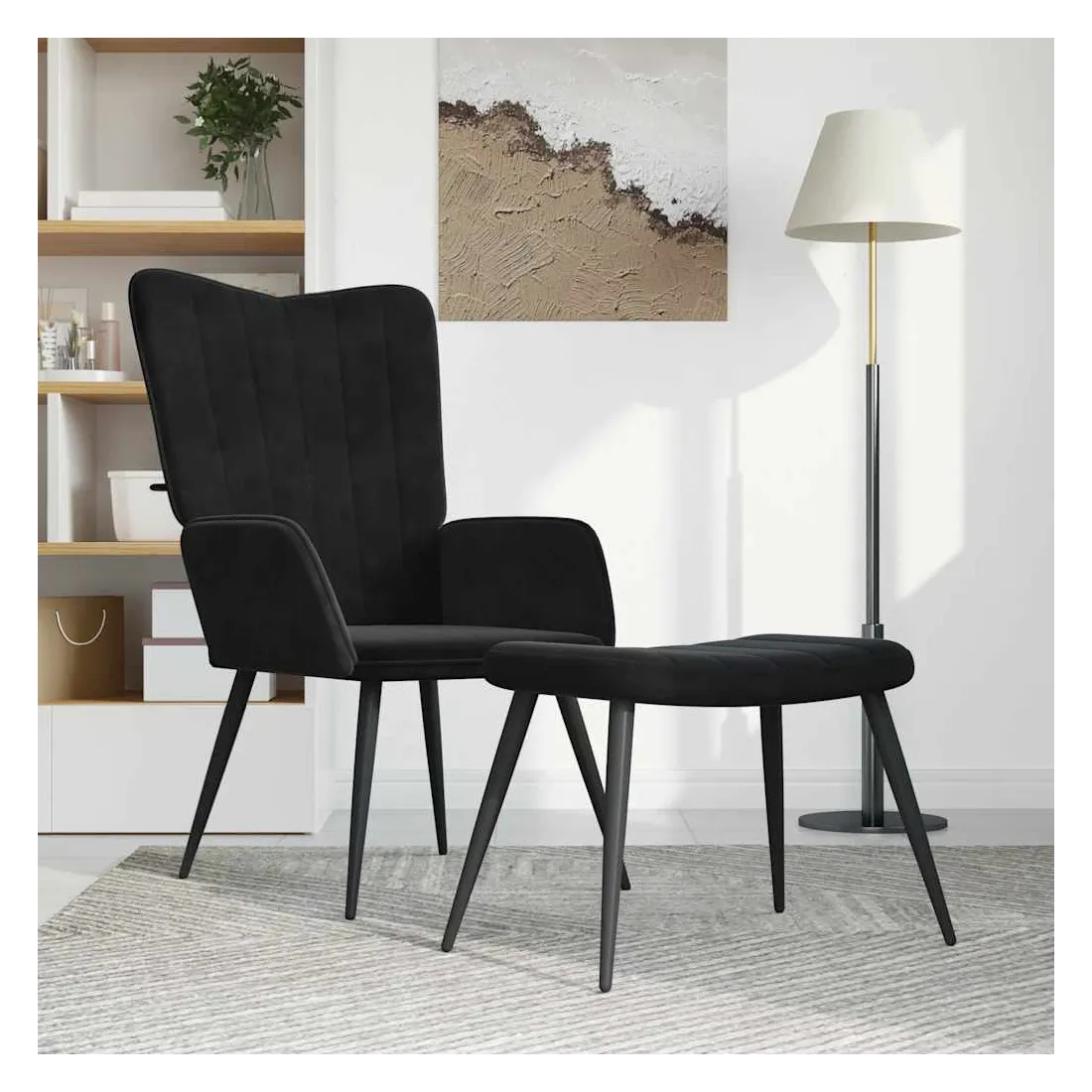 Cette chaise de relaxation avec repose-pied est un excellent supplément à votre décor existant. Ce fauteuil, avec quelques lignes sur son dossier, est esthétique. Grâce à sa mousse capitonnée recouverte de velours doux au toucher, vous pourrez profiter d'un confort optimal pendant votre temps d'assise. Soutenu par un cadre en acier, le fauteuil de relaxation avec repose-pied est stable et durable.