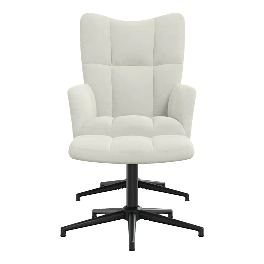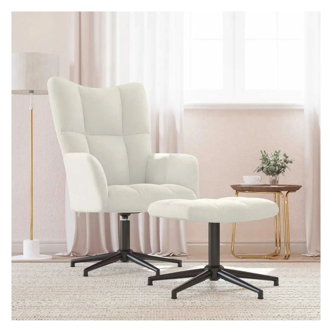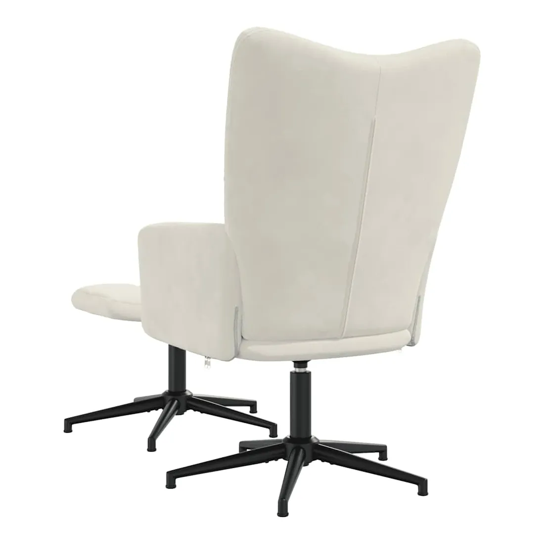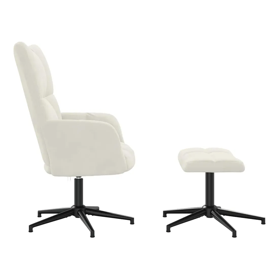 Chaise de relaxation avec tabouret Blanc crème Velours