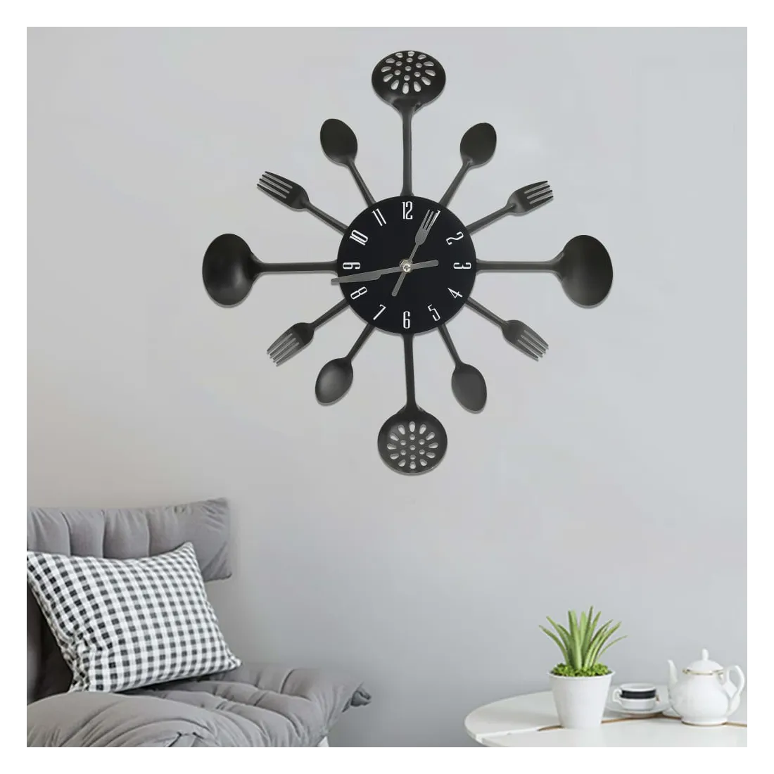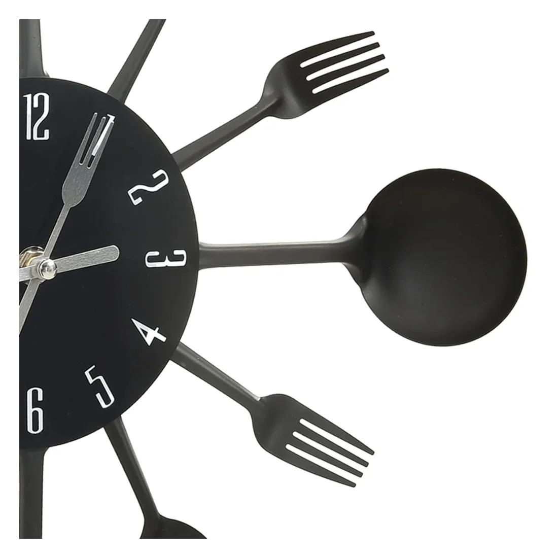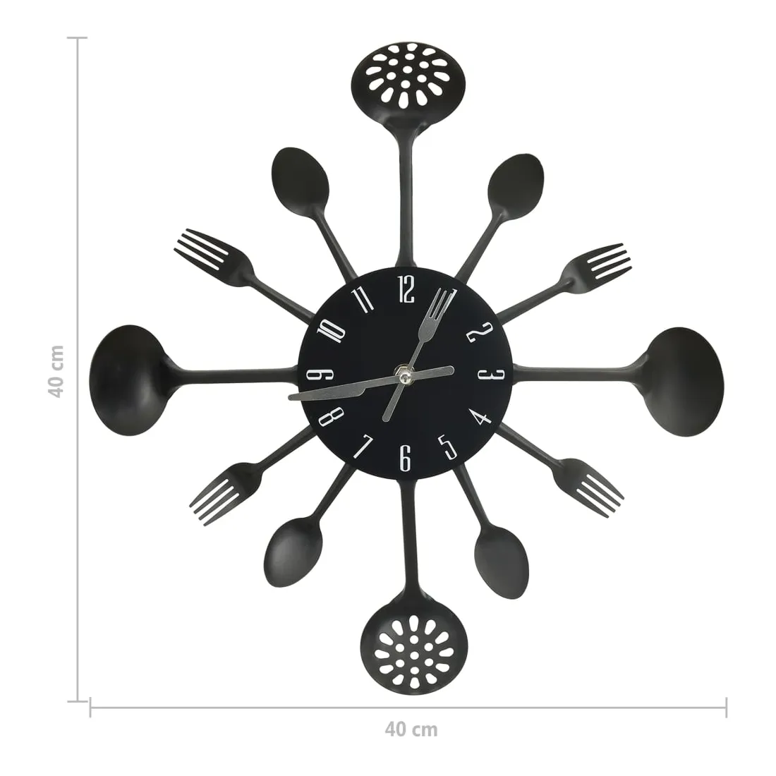 Décorez votre cuisine ou votre salle à manger avec cette horloge murale qui attire l'attention. Cette horloge murale est décorée avec des fourchettes et des cuillères, ce qui en fait une pièce attrayante pour votre intérieur. Le cadran de l’horloge est situé au centre du cercle avec des chiffres clairs de sorte que vous puissiez lire l’heure rapidement et facilement.