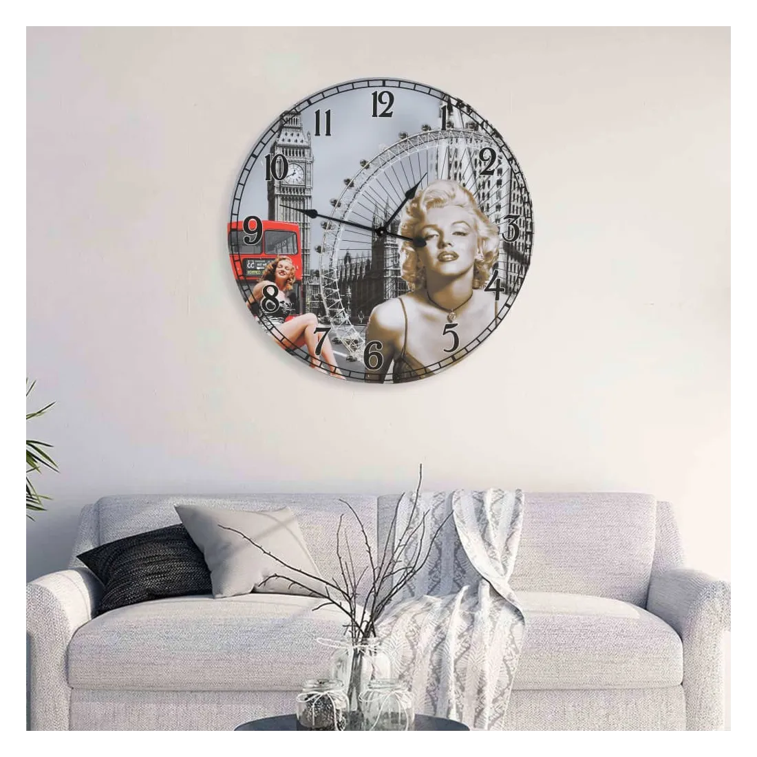Cette horloge murale de style rétro sera un excellent supplément à la décoration de votre pièce ! L'horloge a un cadre en MDF robuste et est très durable. Grâce à la grande face du cadran et aux chiffres clairs, l'horloge peut être lue clairement même sur de longues distances. Elle peut être facilement accrochée au mur. L'horloge ajoutera une touche de nostalgie à votre intérieur.