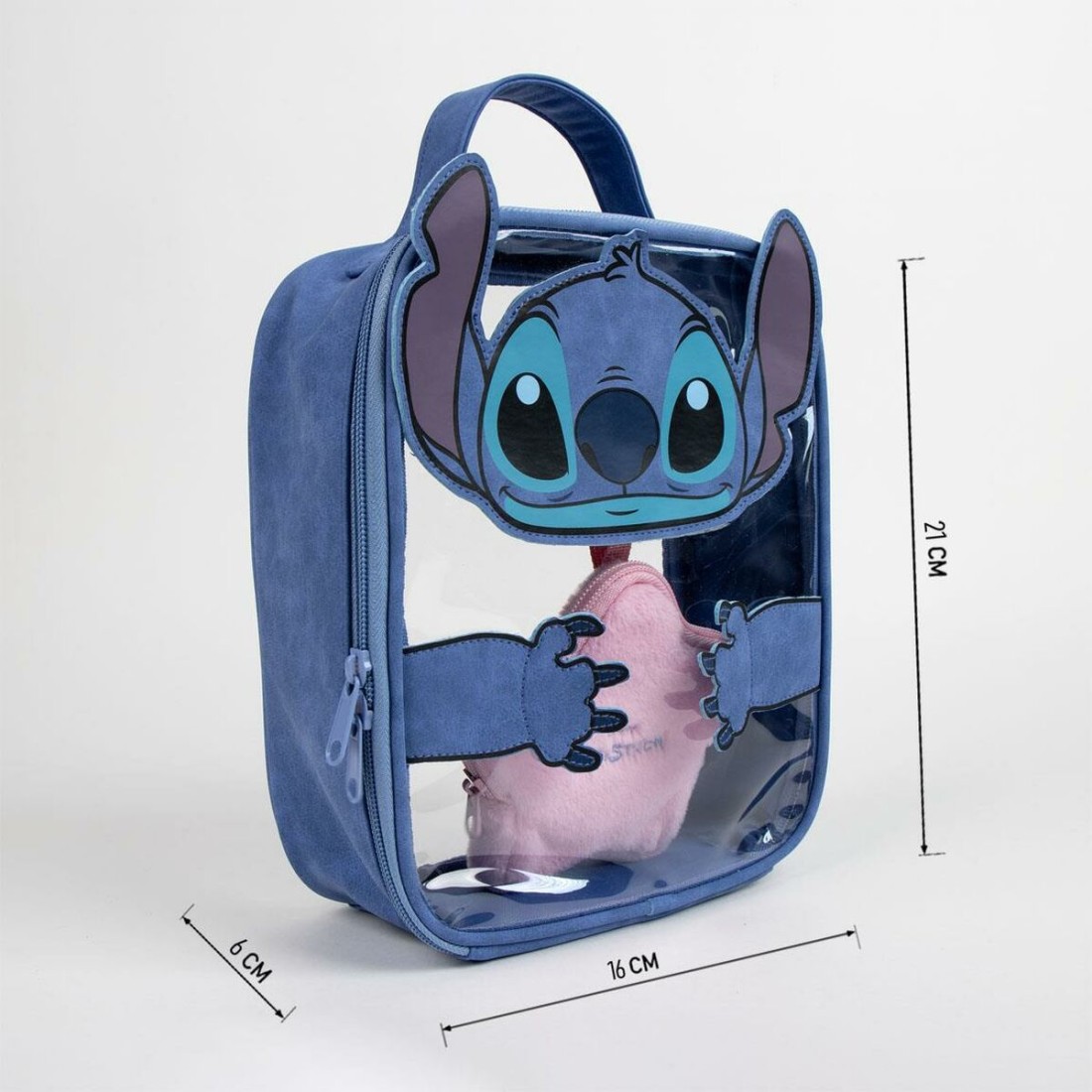 Das Reise-Kosmetiktäschchen Stitch ist ein praktisches und funktionales Accessoire, das die Organisation deiner persönlichen Produkte unterwegs erleichtert. Es präsentiert sich in einem ansprechenden blauen Farbton, der einen schlichten und vielseitigen Stil bietet, passend für jede Gelegenheit. Dieses Täschchen besteht aus einer Kombination widerstandsfähiger Materialien, bestehend aus 30 % PU und 70 % PVC, was Langlebigkeit, Wasserbeständigkeit und einfache Reinigung garantiert – wichtige Eigenschaften für den häufigen Gebrauch auf Reisen. Mit seinen ungefähren Maßen von 16 x 21 x 6 cm bietet es eine kompakte und handliche Größe, die das bequeme Verstauen von Hygieneartikeln, Kosmetika oder kleinen persönlichen Gegenständen ermöglicht, ohne im Gepäck zu viel Platz einzunehmen. Das kompakte und leichte Design erleichtert Transport und Aufbewahrung, ideal für kurze Ausflüge ebenso wie für längere Reisen. Zudem verleiht das PVC-Material dem Täschchen strukturelle Stabilität, ohne die nötige Flexibilität für die Anpassung des Innenraums an den Inhalt einzuschränken. Das Täschchen ist für Nutzer ab 3 Jahren geeignet und besonders in der kalten Jahreszeit, wie im Winter, durch seine Robustheit und einfache Pflege nützlich. Hergestellt in China unter Qualitäts- und Funktionsstandards, ist das Stitch Kosmetiktäschchen ein vielseitiges Zubehör, das grundlegende Anforderungen an Aufbewahrung und Organisation auf Reisen erfüllt. Ein Produkt, das eine praktische und langlebige Lösung für die Verwaltung persönlicher Gegenstände unterwegs bietet.