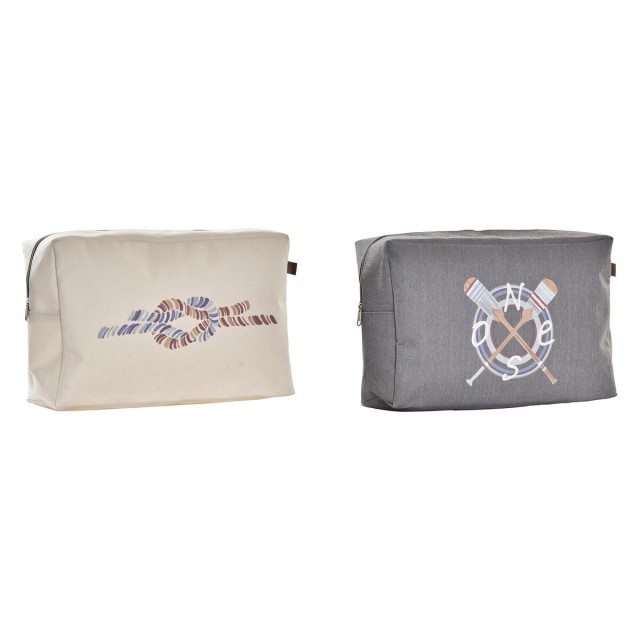 Kulturbeutel DKD Home Decor Grau Weiß Marineblau (30 x 10 x 20 cm) (2 Stück)