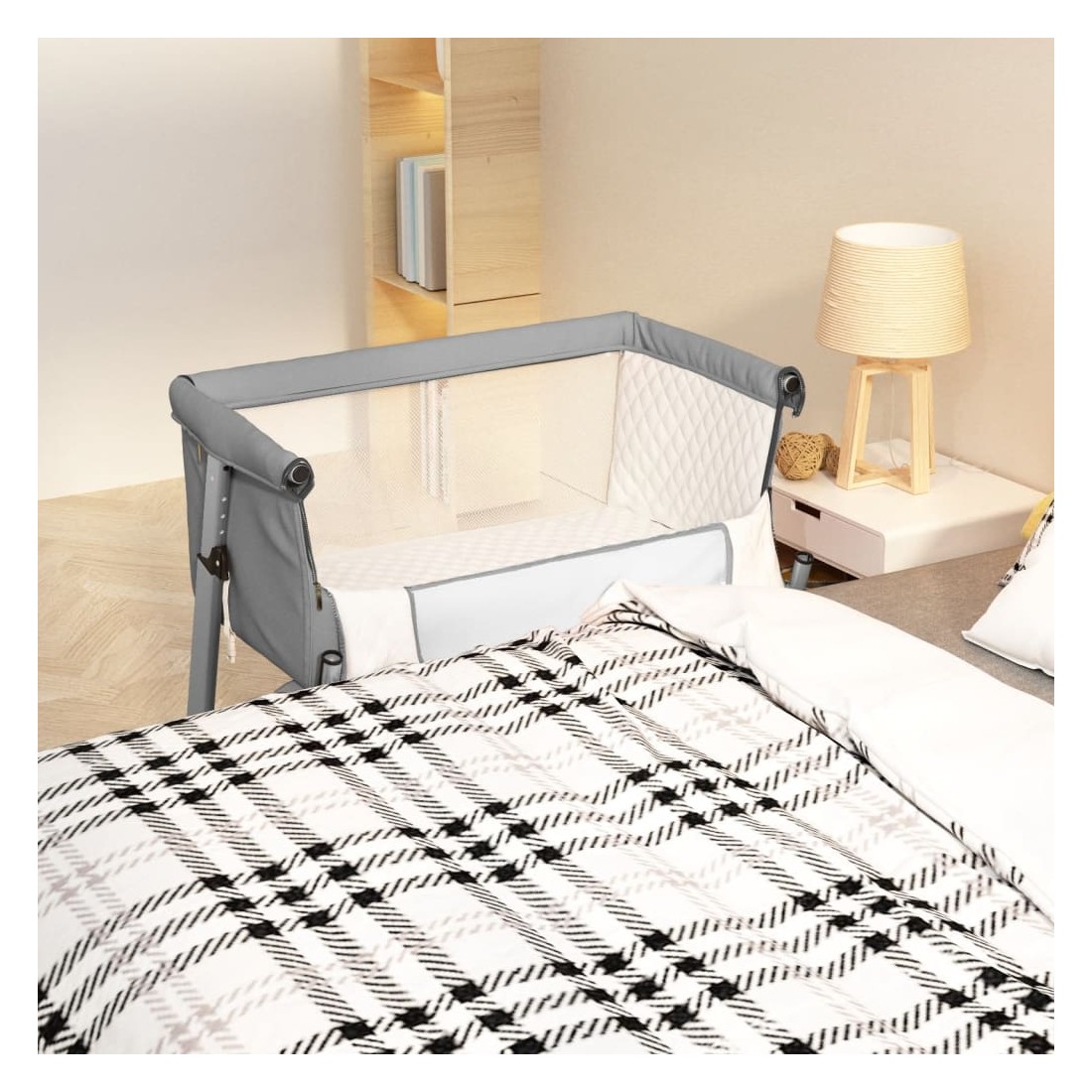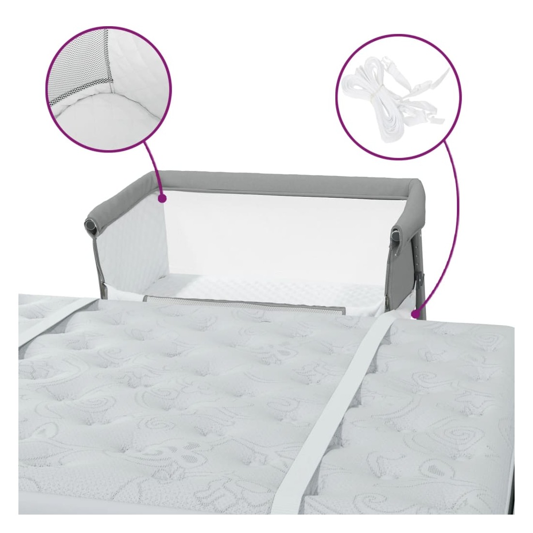 Ce lit pour bébé avec matelas peut être utilisé à côté du lit pour donner à votre bébé un sentiment de sécurité à la proximité des parents. Large application : ce lit bébé peut être utilisé comme lit autoportant où votre enfant peut dormir en toute sécurité, ou vous pouvez également l'attacher au lit des parents pour un meilleur soin du bébé. Matériau pratique : le cadre en fer assure la stabilité. Le lin présente un aspect simple et épuré et est respirant et durable. Le tissu en maille respirante vous permet de mieux surveiller votre bébé. Hauteurs réglables : le lit bébé, doté de 5 hauteurs réglables, est idéal pour une utilisation polyvalente. Vous pouvez l'utiliser au côté du lit, près des canapés et à d'autres endroits. Vous pouvez choisir la bonne hauteur en fonction de vos besoins.Matelas amovible : le matelas du lit pour bébé est souple et confortable. Il est également doté d'une fermeture éclair qui le rend très facile à retirer et à nettoyer. Remarque :Arrêtez d'utiliser le berceau dès que l'enfant est capable de s'asseoir sans aide, de se redresser ou d'apprendre à ramper en se levant sur ses mains et ses genoux.Pour la sécurité du bébé, n'utilisez pas ce produit sans avoir lu les instructions.Ne pas utiliser à côté de lits à eau, de lits ronds ou d'enfants.Chaque produit est livré avec un manuel de montage dans la boîte pour un montage facile.