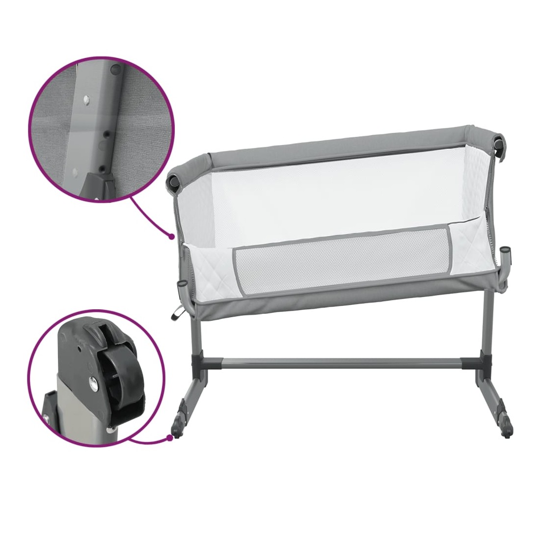 Ce lit pour bébé avec matelas peut être utilisé à côté du lit pour donner à votre bébé un sentiment de sécurité à la proximité des parents. Large application : ce lit bébé peut être utilisé comme lit autoportant où votre enfant peut dormir en toute sécurité, ou vous pouvez également l'attacher au lit des parents pour un meilleur soin du bébé. Matériau pratique : le cadre en fer assure la stabilité. Le lin présente un aspect simple et épuré et est respirant et durable. Le tissu en maille respirante vous permet de mieux surveiller votre bébé. Hauteurs réglables : le lit bébé, doté de 5 hauteurs réglables, est idéal pour une utilisation polyvalente. Vous pouvez l'utiliser au côté du lit, près des canapés et à d'autres endroits. Vous pouvez choisir la bonne hauteur en fonction de vos besoi