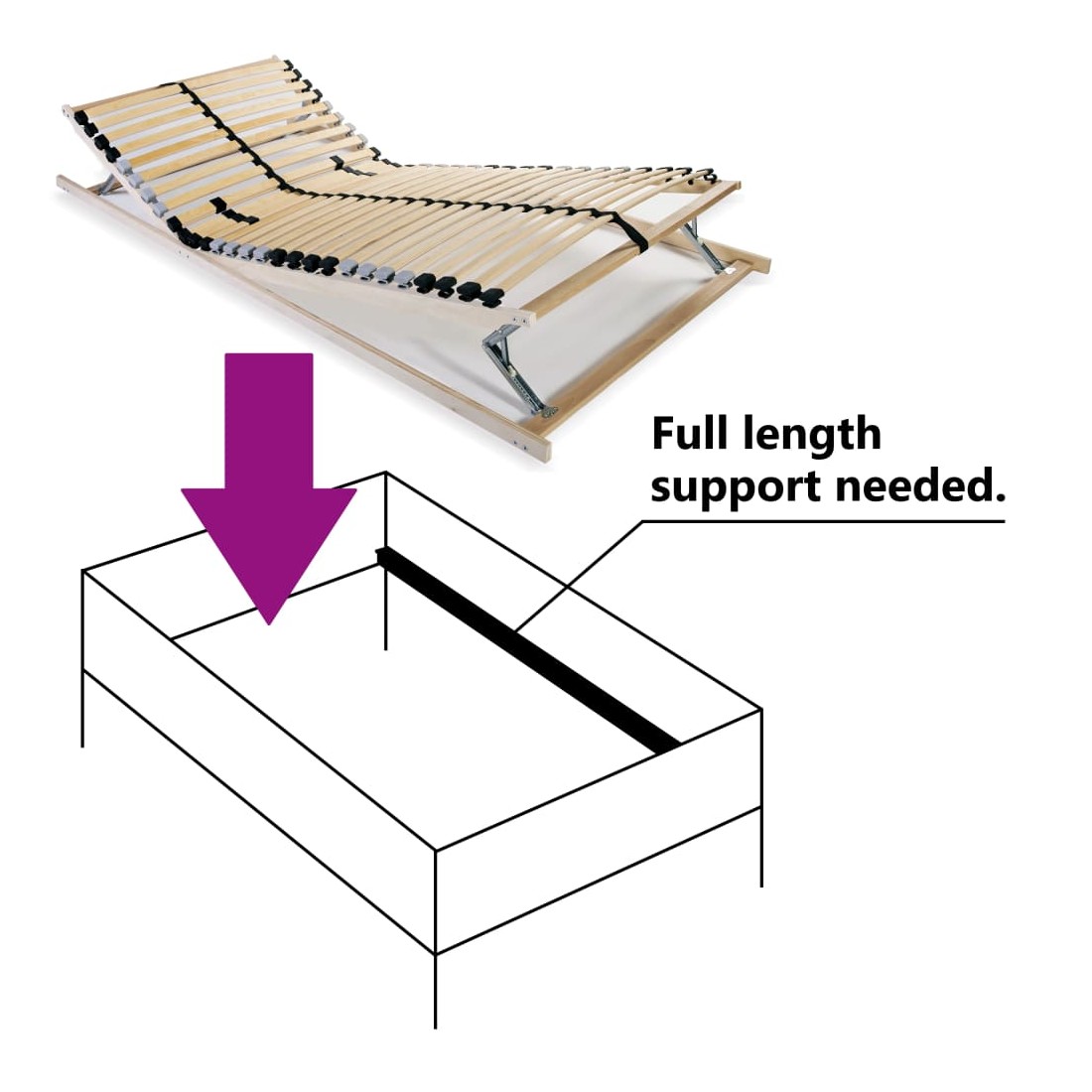 Notre sommier à lattes confortable vous fera aimer encore davantage votre lit ! Avec un cadre en hêtre massif et des lattes en bouleau, le sommier est robuste et durable. Les 7 zones de confort offrent un soutien optimal à votre corps. Les deux extrémités des lattes sont maintenues en place par des capuchons en caoutchouc SBS pour une meilleure stabilité de l'ensemble de la structure. Grâce aux 4 lattes doubles réglables dans la zone centrale, la fermeté de la base peut être ajustée en fonction de vos besoins. La section de la tête et celle des pieds sont réglables pour que vous puissiez lire ou regarder la télévision confortablement. L'assemblage est facile. Veuillez noter que la livraison comprend uniquement un sommier à lattes ; un matelas et un cadre de lit ne sont pas inclus. Bon à savoir : l'assemblage est requis en raison des restrictions d'expédition limitant la taille du paquet à un maximum de 120 cm.