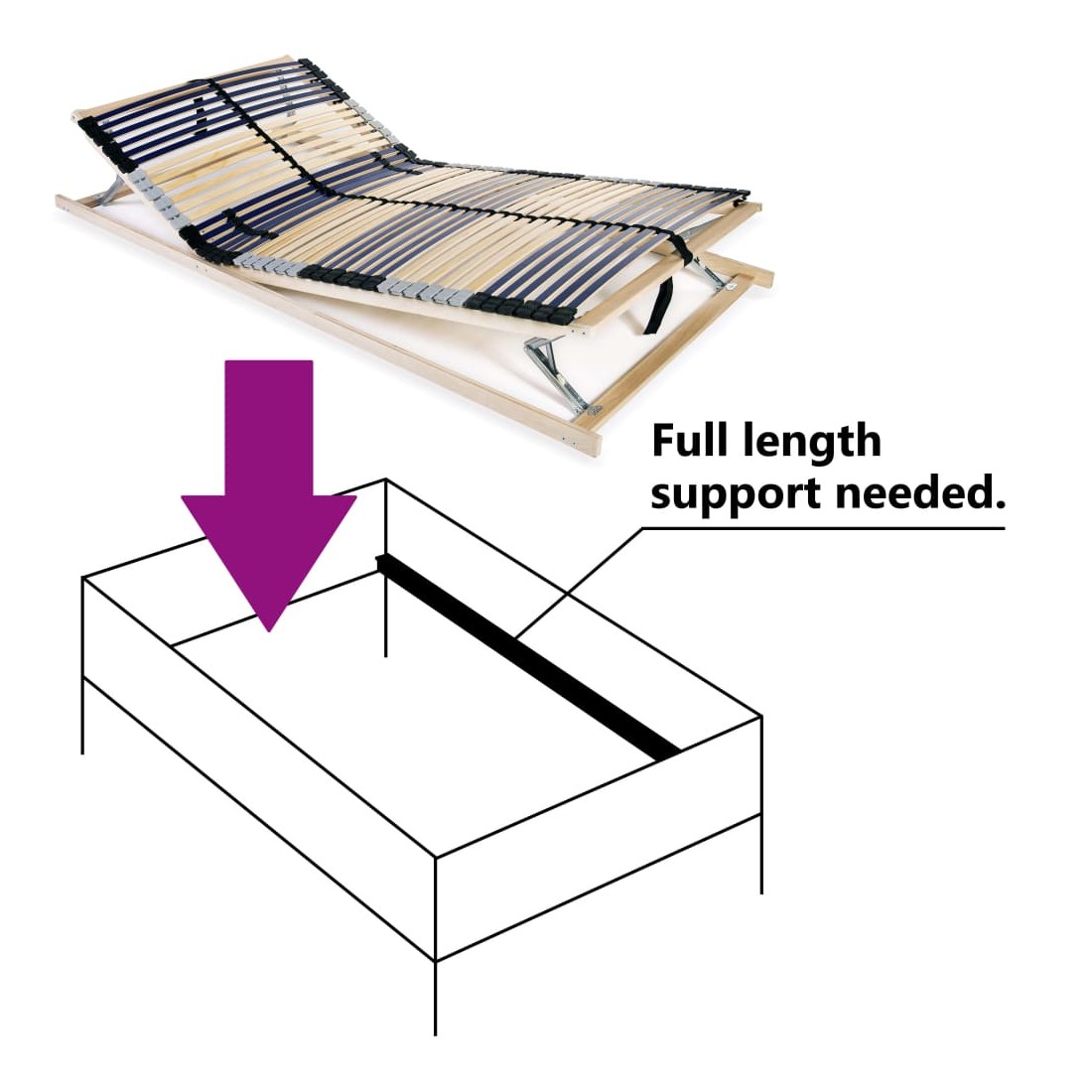 Notre sommier à lattes confortable vous fera aimer encore davantage votre lit ! Avec un cadre en hêtre massif et des lattes en bouleau, le sommier est robuste et durable. Les 7 zones de confort offrent un soutien optimal à votre corps. Les deux extrémités des lattes sont maintenues en place par des capuchons en caoutchouc SBS pour une meilleure stabilité de l'ensemble de la structure. Grâce aux 6 lattes doubles réglables dans la zone centrale, la fermeté de la base peut être ajustée en fonction de vos besoins. Les zones de la tête et des pieds sont réglables pour votre confort. L'assemblage est facile. Veuillez noter que la livraison comprend uniquement une base de lit à lattes ; un matelas et un cadre de lit ne sont pas inclus. Bon à savoir : l'assemblage est requis en raison des restrictions d'expédition limitant la taille du paquet à un maximum de 120 cm.