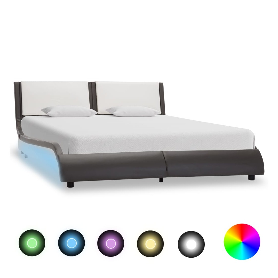 Cadre de lit avec LED sans matelas Gris et blanc 120 x 190 cm