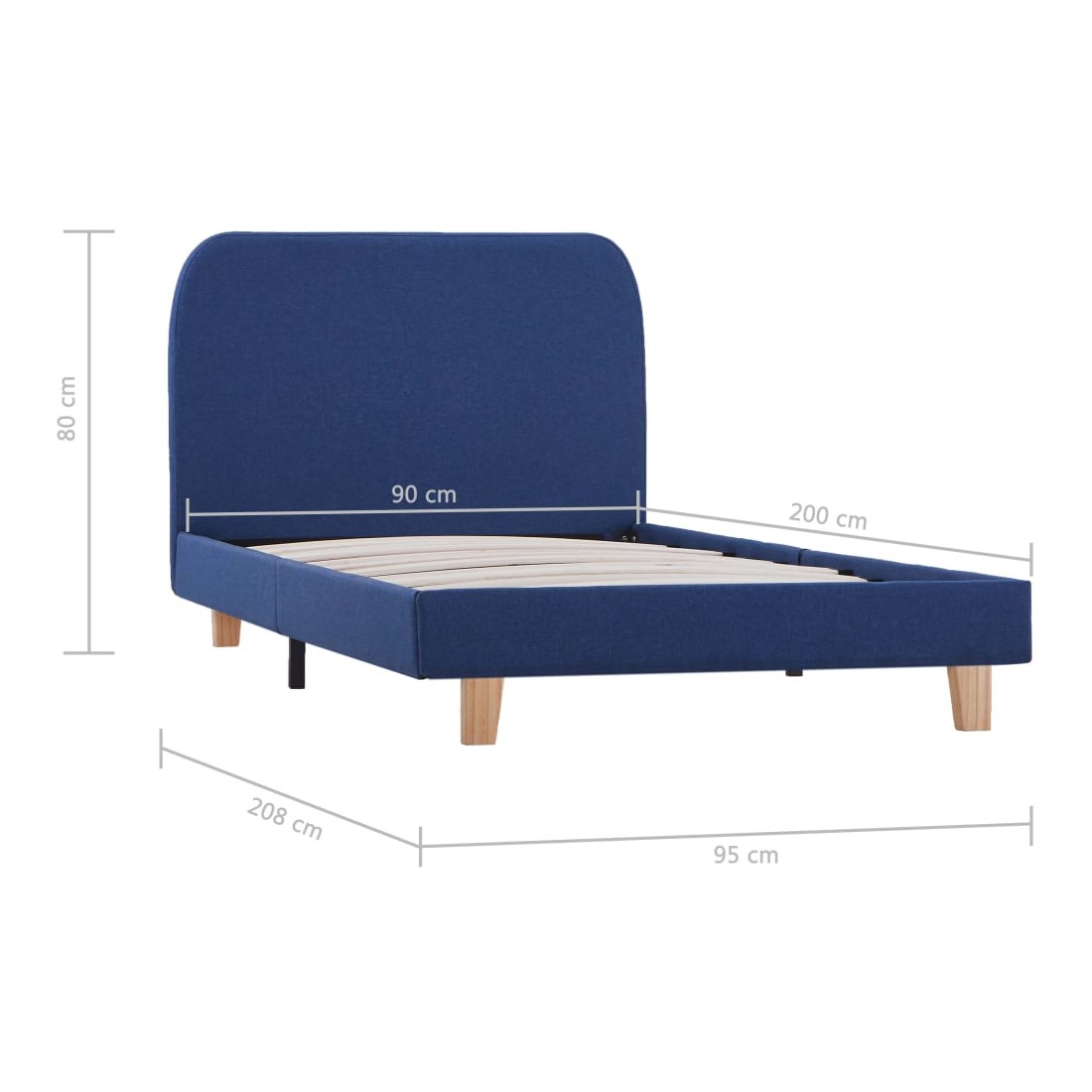 Cadre de lit sans matelas bleu tissu 90x200 cm