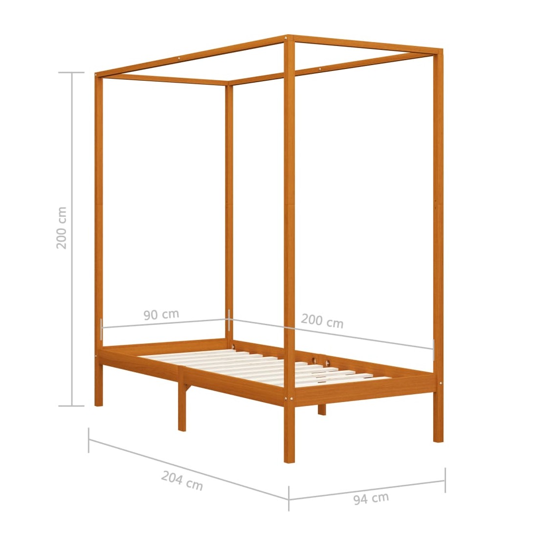 Cadre de lit à baldaquin sans matelas bois massif 90x200 cm