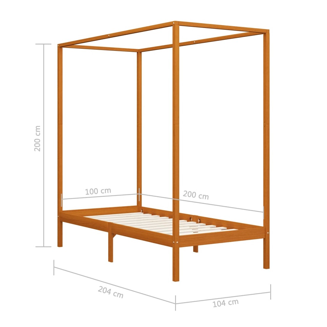Cadre de lit à baldaquin sans matelas bois massif 100x200 cm