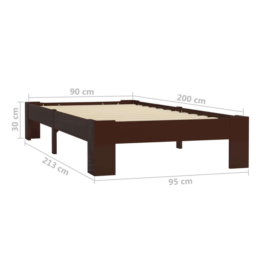 Prenez le chemin moderne vers une chambre cool avec notre cadre de lit en bois solide intemporel ! Il sera un supplément pratique et décoratif à votre intérieur. Fabriqué en bois de pin massif, ce cadre de lit est très robuste et durable. Ce cadre de lit convient à un matelas de 90 x 200 cm. Veuillez noter que la livraison inclut un cadre de lit seulement ; un matelas n'est pas inclus. Le lit est facile à assembler. Vous pouvez chercher le matelas correspondant dans notre boutique.
