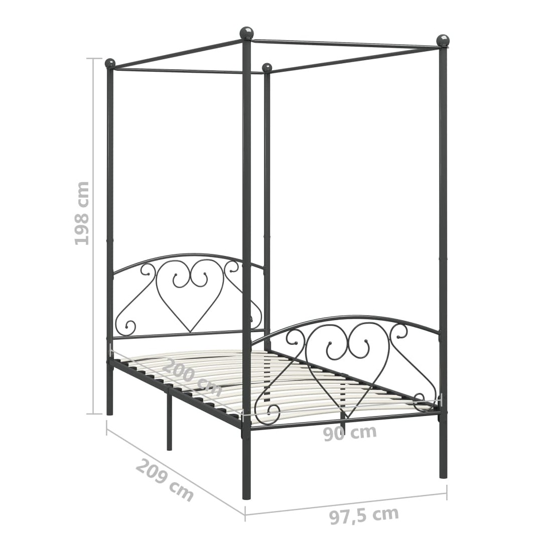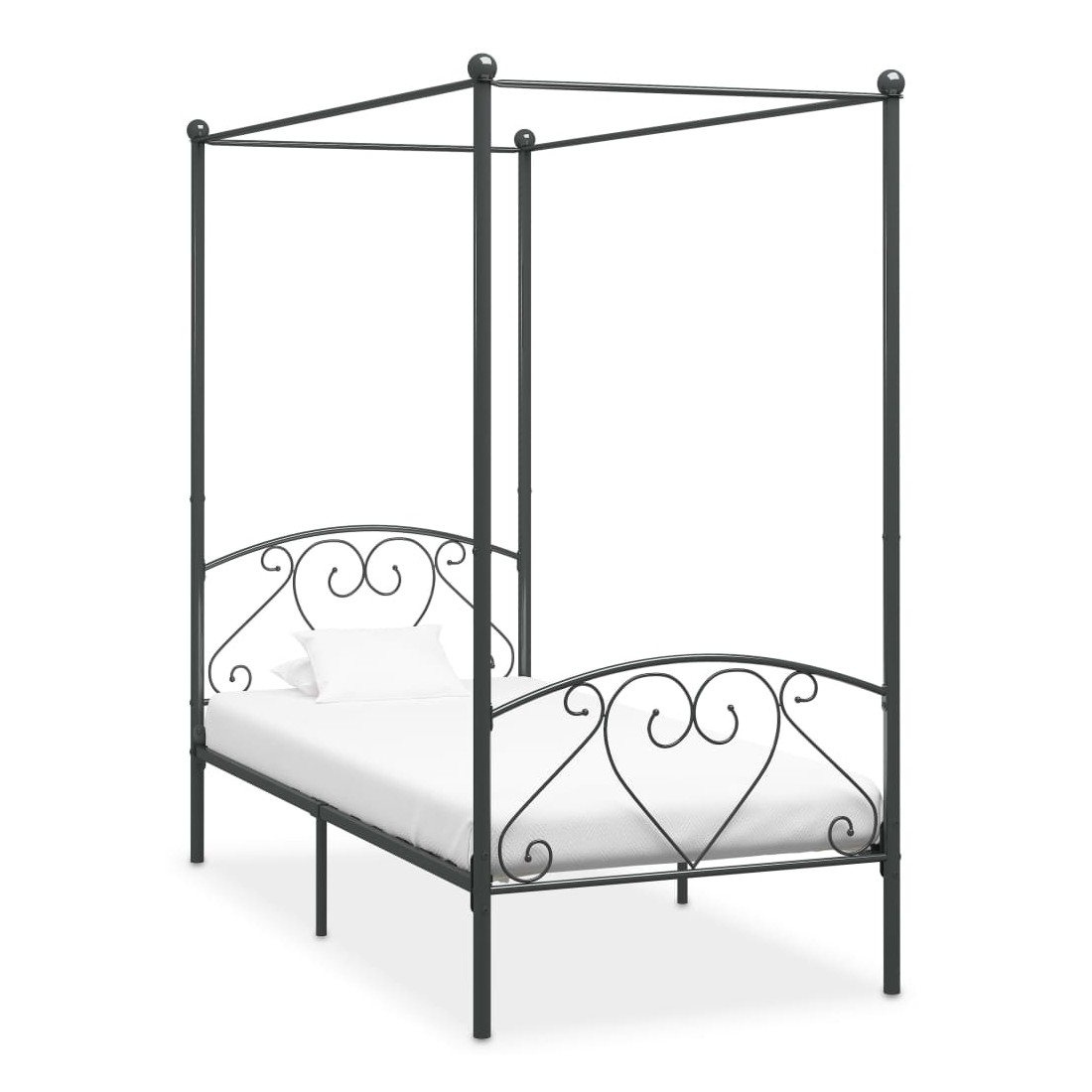 Cadre de lit à baldaquin sans matelas gris métal 90x200 cm