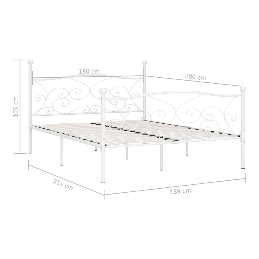 Cadre de lit et sommier à lattes Blanc Métal 180 x 200 cm