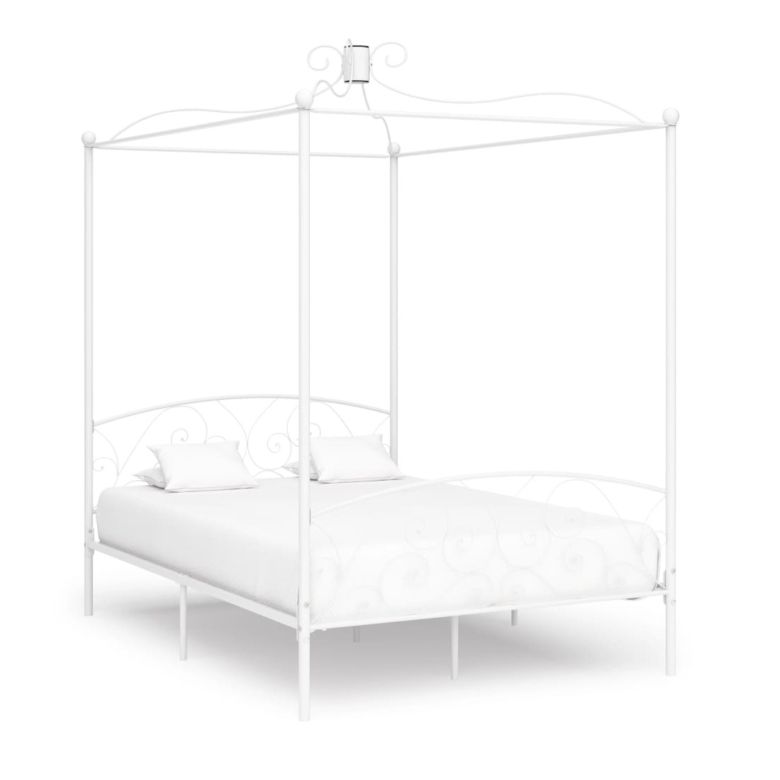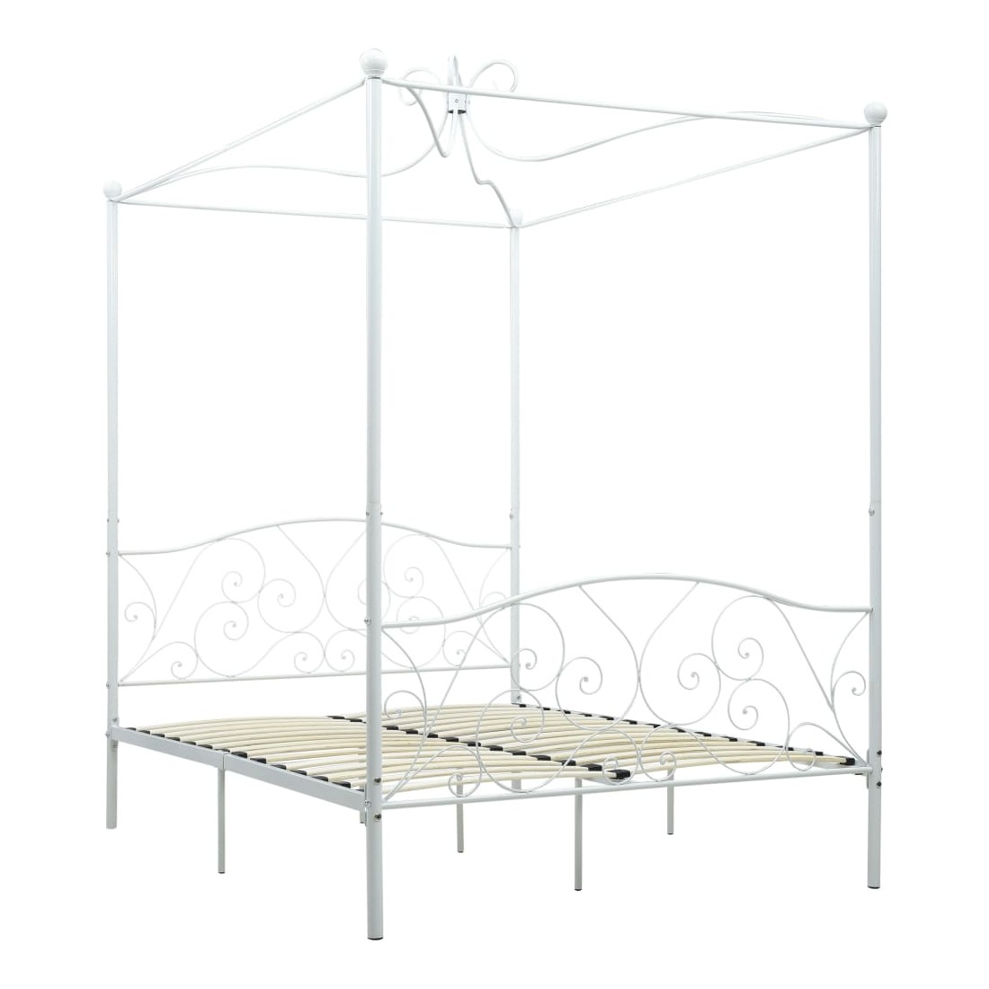 Cadre de lit sans matelas avec baldaquin blanc 140x200 cm métal
