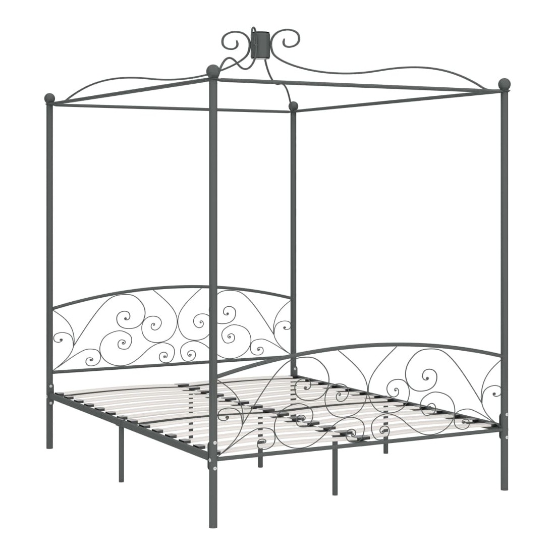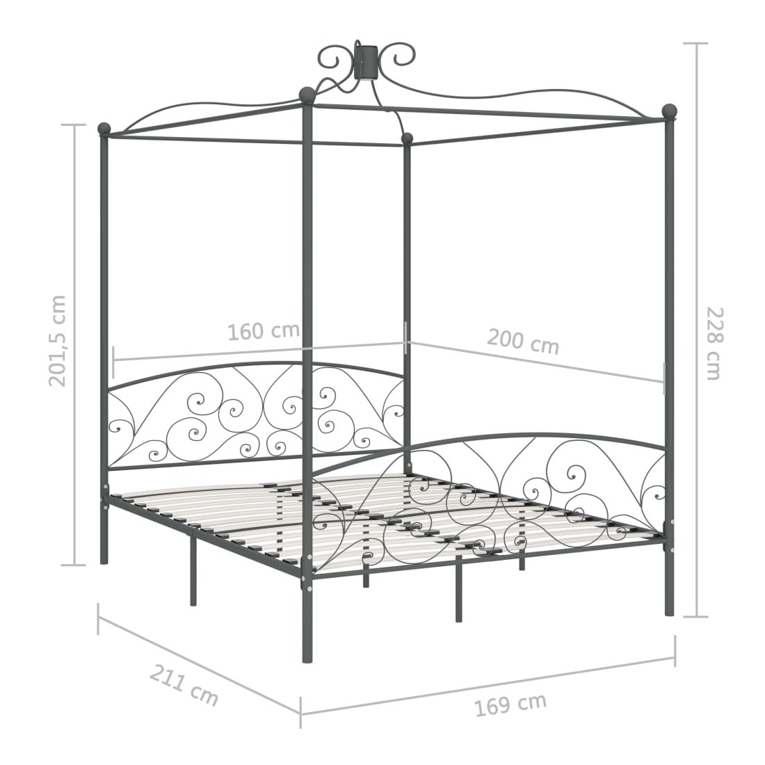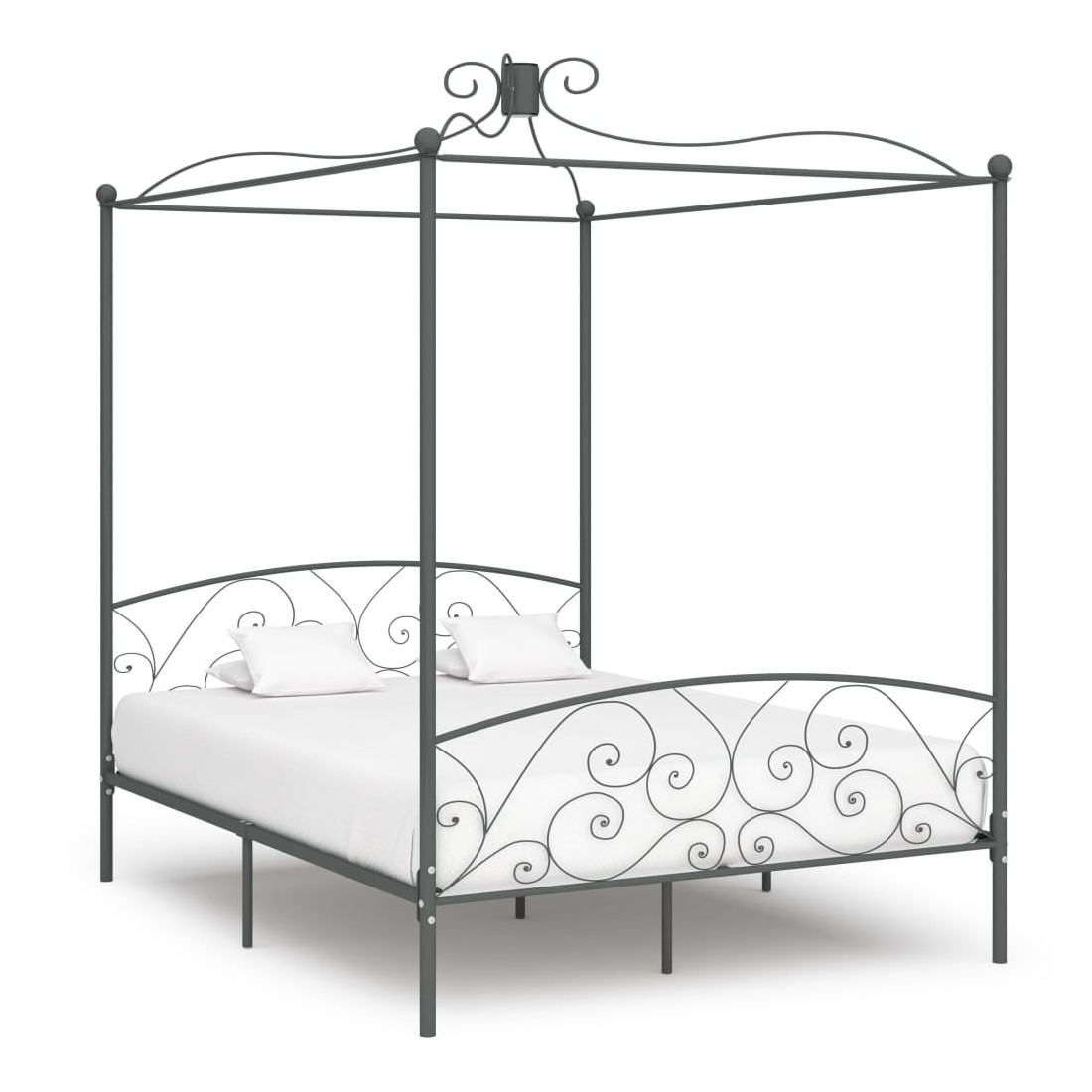 Cadre de lit à baldaquin sans matelas gris métal 160x200 cm
