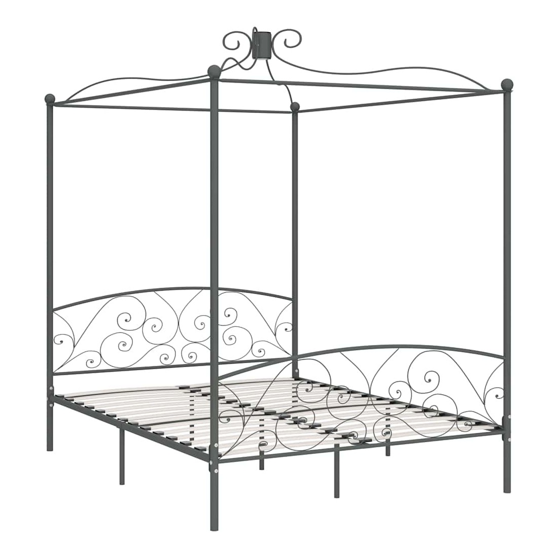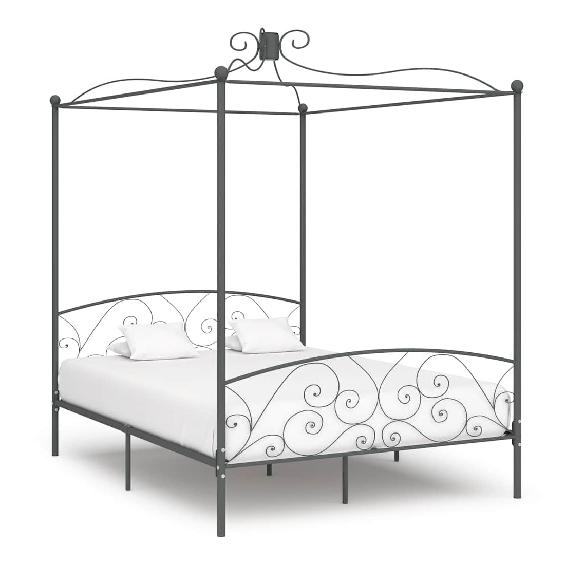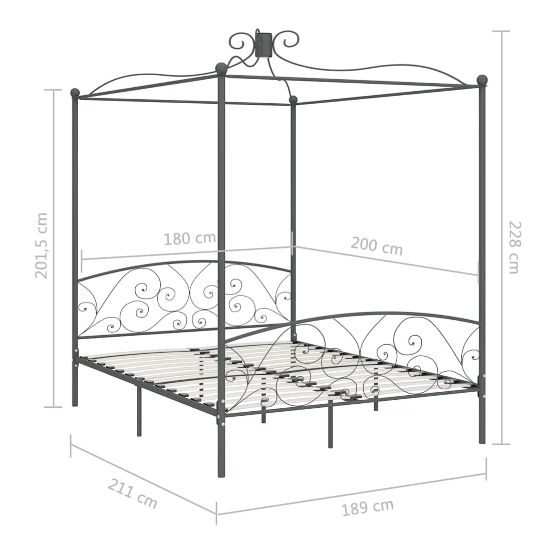 Cadre de lit à baldaquin sans matelas gris métal 180x200 cm