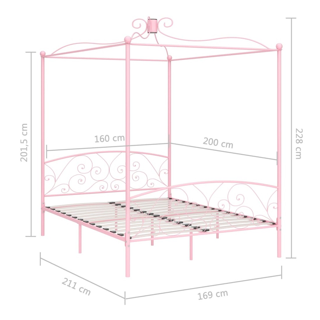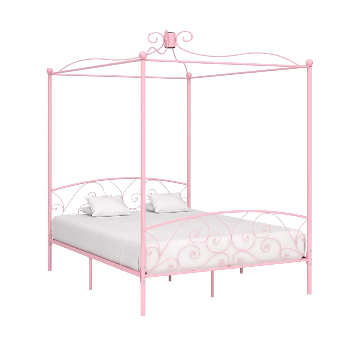 Donnez un aspect élégant et classique à votre chambre à coucher avec notre cadre de lit à baldaquin en métal ! Le lit est intelligemment conçu avec un cadre supérieur pour accrocher vos rideaux ou votre moustiquaire préférés, ce qui ajoute un charme unique à votre chambre à coucher, tout en créant une intimité supplémentaire. Fabriqué en métal solide, ce cadre de lit est extrêmement robuste et durable. Avec toutes ces caractéristiques combinées, vous aurez certainement une bonne nuit de sommeil ! Le cadre du lit doit être assemblé. Veuillez noter que la livraison inclut un cadre de lit avec un sommier à lattes. Un matelas n'est pas inclus. Vous pouvez chercher le matelas correspondant dans notre boutique.