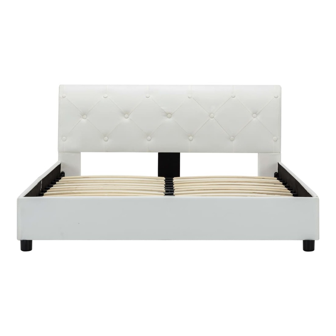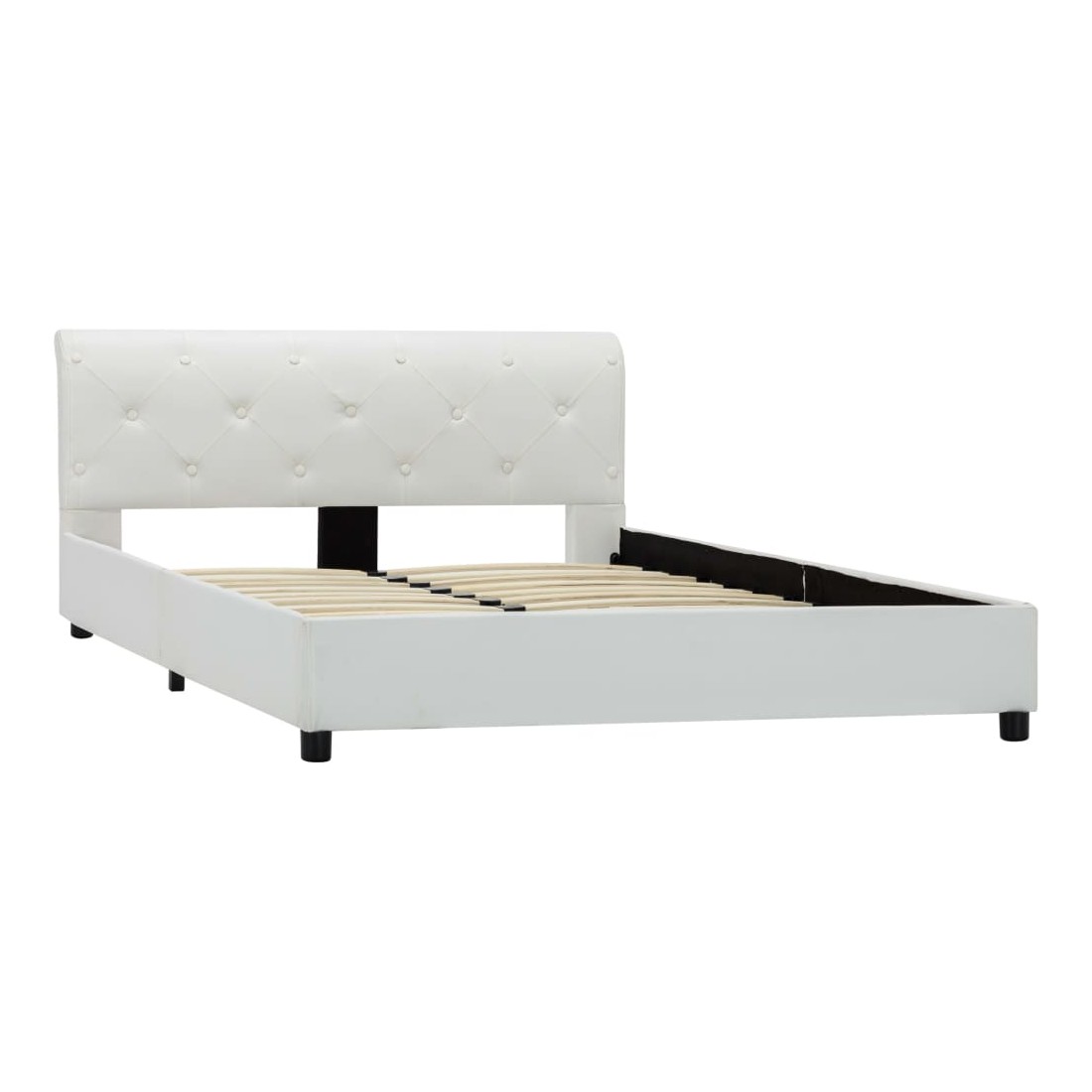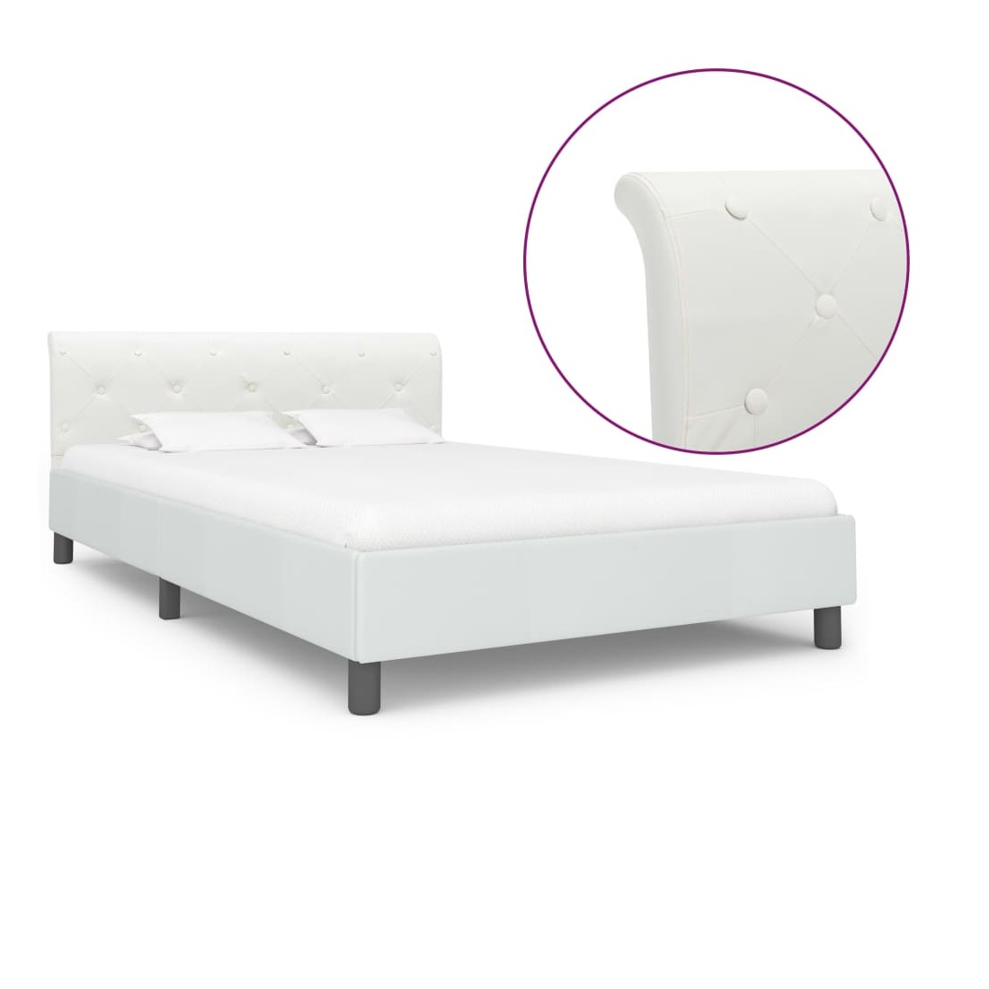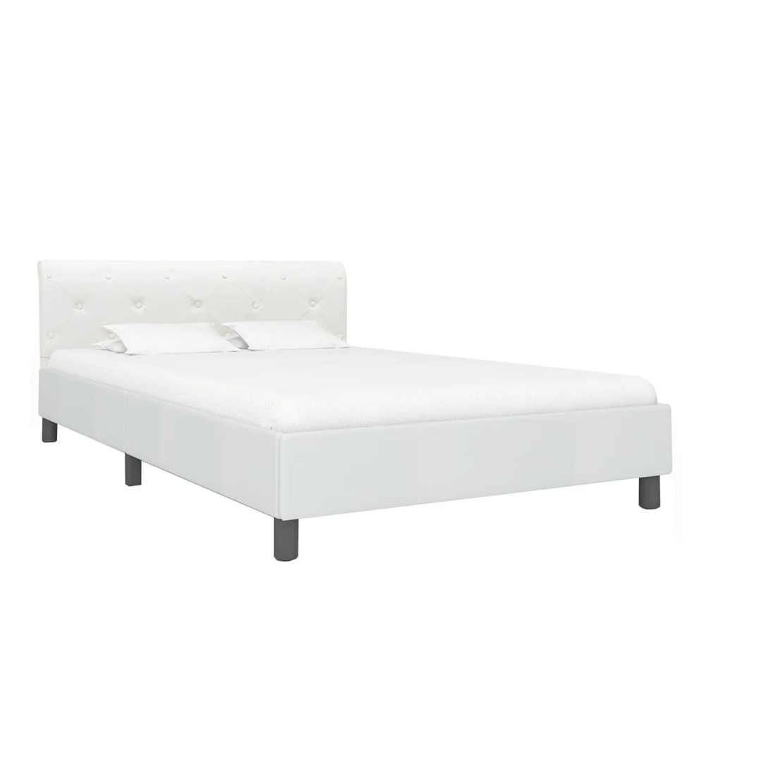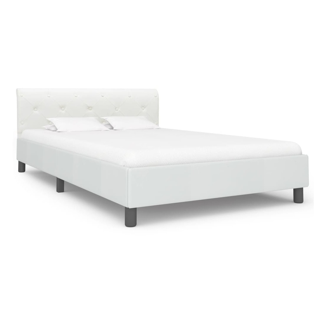 Ce cadre de lit classique deviendra l'attraction principale de votre chambre à coucher. Se distinguant par un design sobre mais élégant, ce cadre de lit ajoute une touche de charme élégant à la décoration de votre chambre à coucher. Fabriqué en bois et en MDF, ce cadre de lit est extrêmement robuste et durable. Les pieds en acier enduit de poudre ajoutent de la durabilité au lit. De plus, recouvert de similicuir durable, le lit dégage un look accueillant et se nettoie facilement. Ce cadre de lit convient à un matelas de 140 x 200 cm. Veuillez noter que la livraison inclut un cadre de lit seulement ; un matelas n'est pas inclus. Le lit est facile à assembler. Vous pouvez chercher le matelas correspondant dans notre boutique.