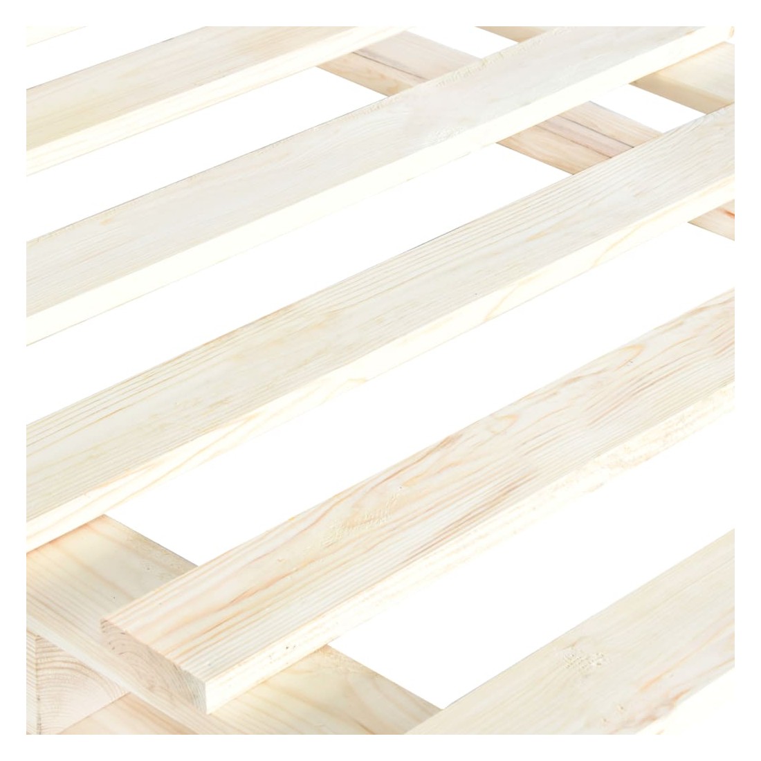 Notre cadre de lit de palette classique deviendra le point central de toute chambre à coucher. Avec son design intemporel, notre cadre de lit en bois massif sera un supplément pratique et décoratif à votre intérieur. Fabriqué en bois de pin massif, ce cadre de lit est extrêmement solide et durable. Les lattes robustes offrent le soutien nécessaire et sont très confortables. Ce cadre de lit convient à un matelas de 90 x 200 cm. Veuillez noter que la livraison inclut un cadre de lit seulement ; un matelas n'est pas inclus. Le lit est facile à assembler.