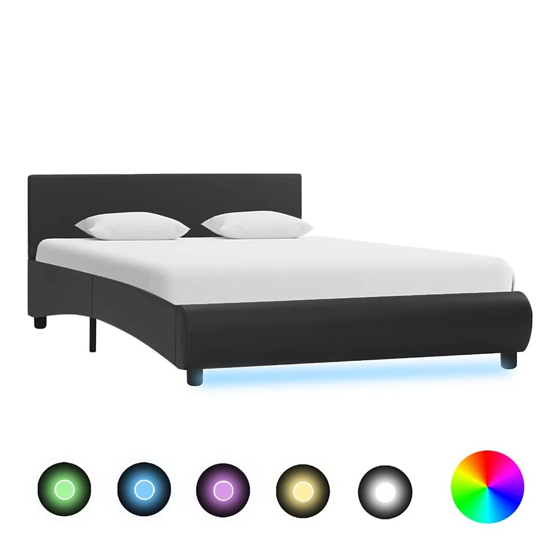 Ajoutez instantanément un goût moderne impressionnant à votre chambre à coucher avec notre cadre de lit en faux cuir ! Distingué par un design simple mais intemporel, le cadre de lit ajoute une touche de charme élégant à la décoration de votre chambre à coucher. Le cadre en acier enduit de poudre et les lattes en bois ajoutent à la robustesse et la durabilité du lit. Tapissé de similicuir durable et facile à nettoyer, le lit dégage un look accueillant. Le lit rembourré convient à un matelas de 120 x 200 cm. En outre, vous pouvez facilement régler la puissance, la luminosité et les différentes couleurs clignotantes de la bande lumineuse LED avec la télécommande à 24 touches entièrement fonctionnelle incluse pour créer un spectacle de lumière époustouflant. Veuillez noter que la livraison inclut un cadre de lit seulement ; un matelas n'est pas inclus. Le lit est facile à assembler. Vous pouvez chercher le matelas correspondant dans notre boutique. Remarque : ce produit est doté d'un connecteur USB, mais la source d'alimentation certifiée de USB 5V n'est pas incluse.