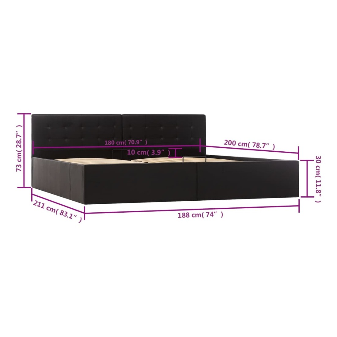 Cadre de lit avec rangement hydraulique Similicuir 180x200 cm