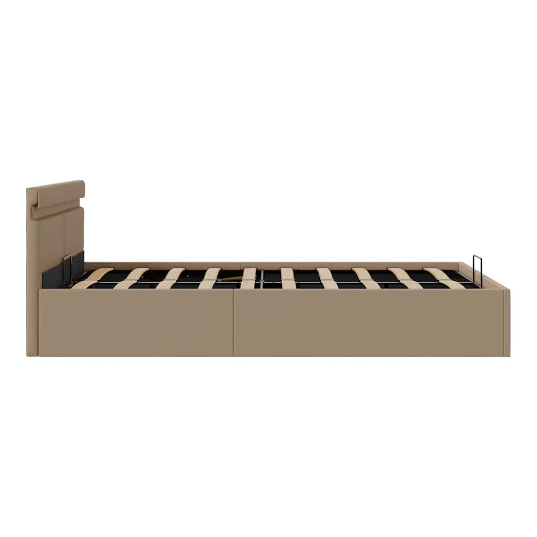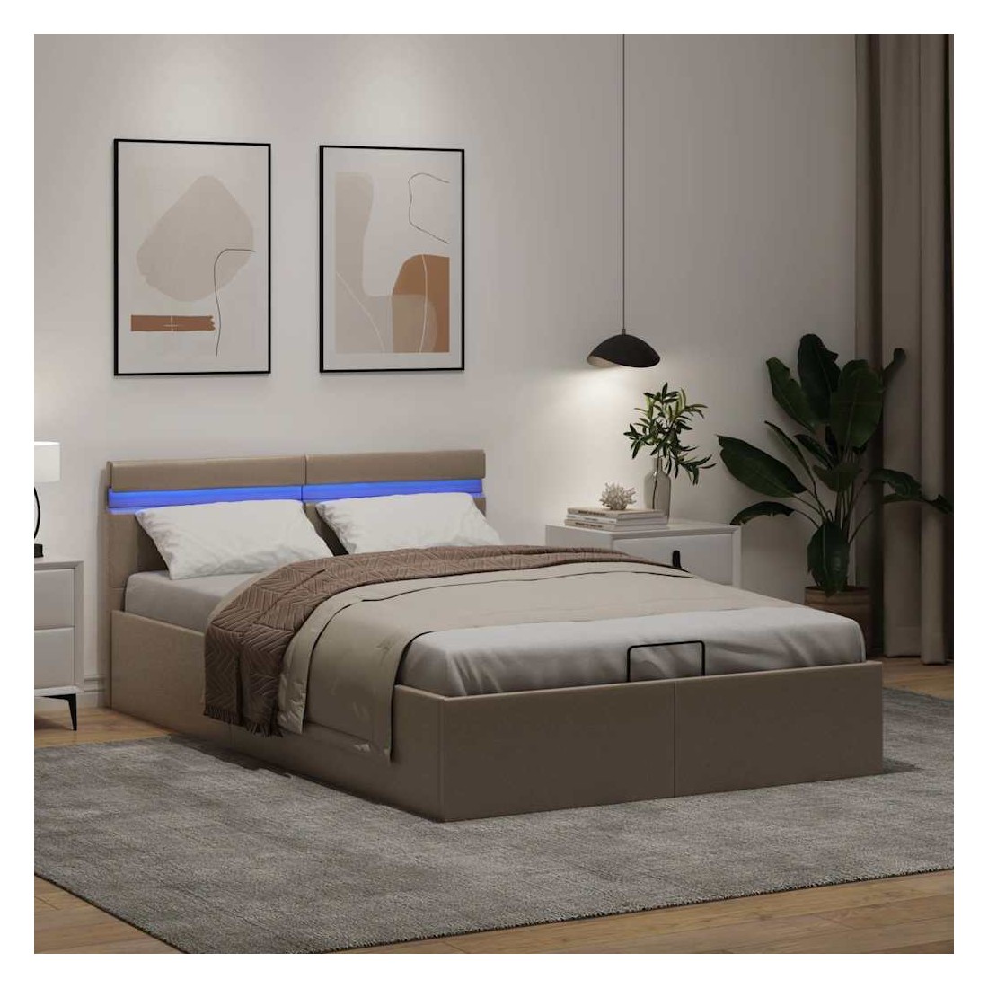Ajoutez instantanément un goût moderne impressionnant à votre chambre à coucher grâce à notre cadre de lit en similicuir hydraulique ! Ce lit double se caractérise par un design simple mais élégant, ainsi que par une construction solide, car il est fabriqué en MDF robuste et résistant. Ce lit rembourré transforme l'espace inutilisé sous le matelas en espace de rangement, avec suffisamment d'espace pour ranger les vêtements, les draps, les couvertures, etc. Le mécanisme de levage à gaz hydraulique facilite le soulèvement du matelas. Le sommier à lattes restera droit une fois soulevé pour vous laisser les deux mains libres d'enlever ou de stocker des articles en dessous. Le cadre en acier enduit de poudre et les lattes en contreplaqué ajoutent à la robustesse et à la durabilité du lit. Rembourré de similicuir brillant, ce lit semble accueillant et facile à entretenir. Ce meuble de chambre à coucher convient à un matelas de 140 x 200 cm. Ce lit est équipé de lumières LED qui peuvent être facilement réglées pour créer un spectacle lumineux personnalisé. Vous pouvez personnaliser les modes, les couleurs et la luminosité pour améliorer l'ambiance de votre espace intérieur. Ce produit est facile à assembler. Veuillez noter que la livraison inclut un cadre de lit seulement ; un matelas n'est pas inclus. Vous pouvez chercher le matelas correspondant dans notre boutique.