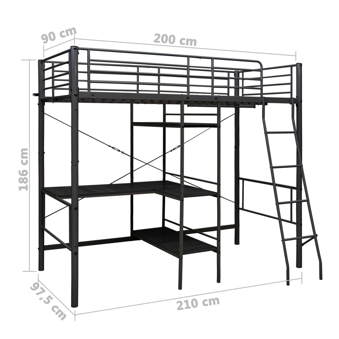 - Dimensions du lit supérieur : 210 x 97,5 x 186 cm (L x l x H)