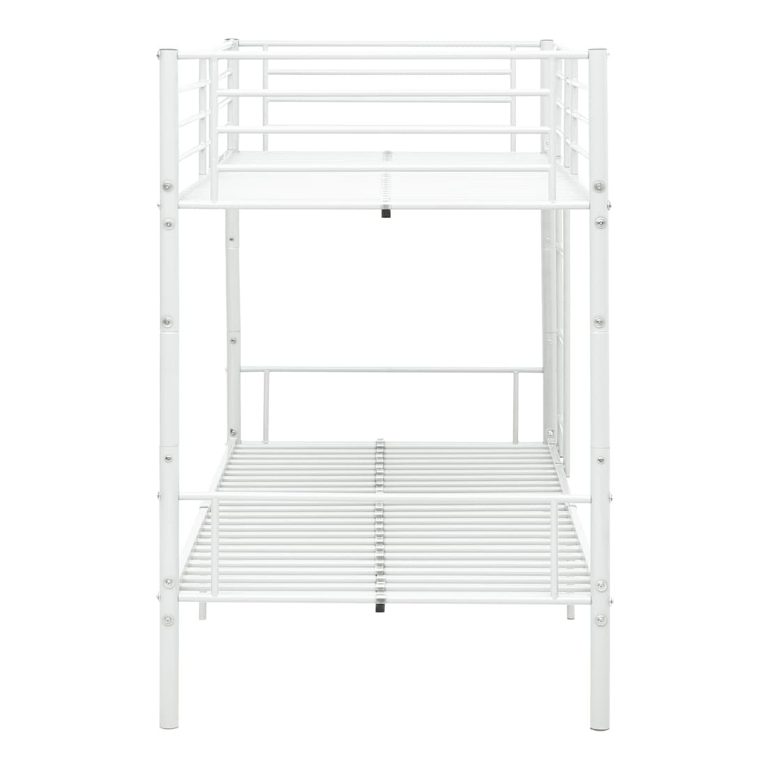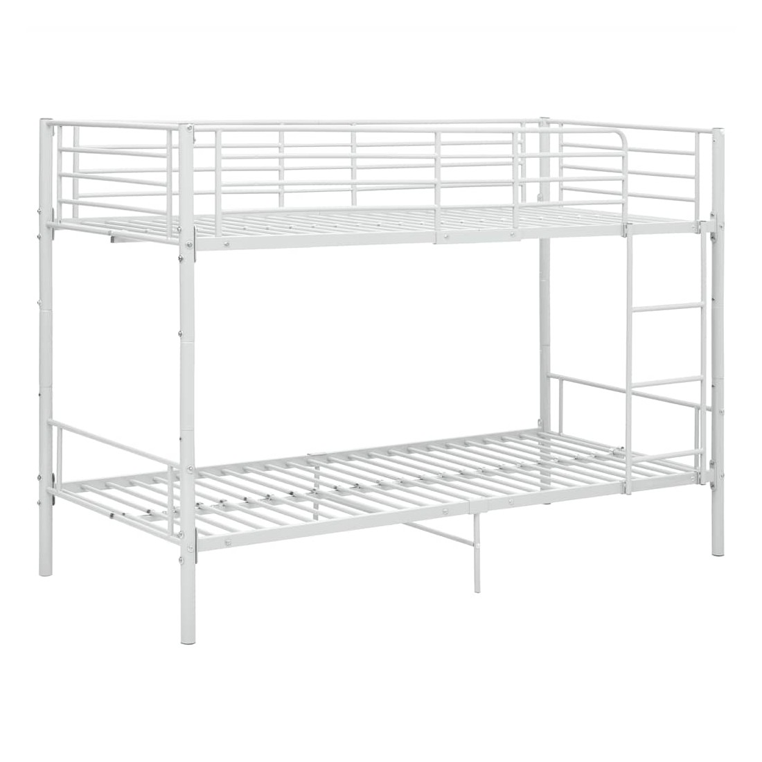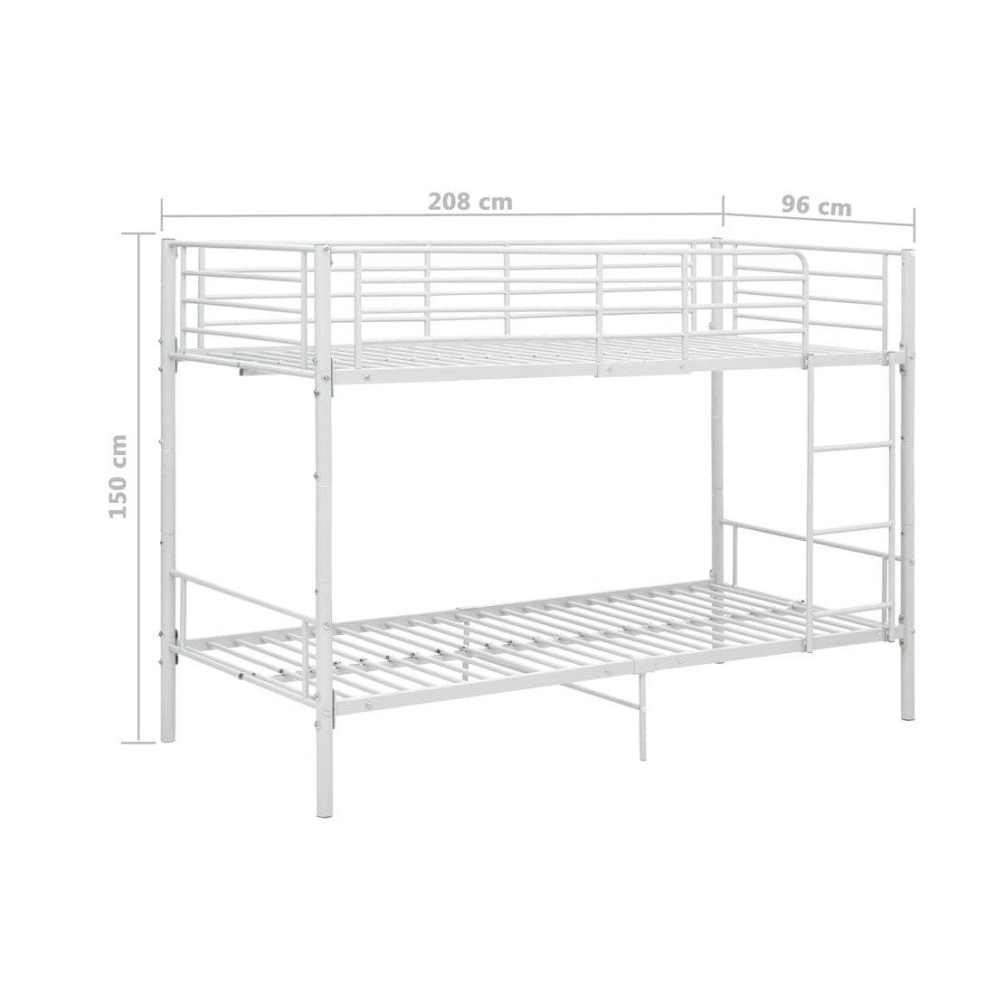 Ce lit superposé en métal est élégant et fonctionnel, ce qui en fait un complément parfait pour toute chambre dont l'espace est limité. Il peut constituer un excellent choix pour la chambre d'enfants car il augmente le plaisir au moment du coucher, juste avant qu'ils ne s'endorment ! Notre lit superposé est fabriqué en métal robuste avec un revêtement enduit de poudre et assure une grande stabilité et durabilité. Conçu dans un souci de sécurité, ce lit superposé comprend des garde-corps sur toute sa longueur et une solide échelle de montée. Le cadre de lit est entièrement construit en tubes métalliques, ce qui le rend très durable et adapté à un usage quotidien. Le lit est facile à assembler. Veuillez noter que les matelas ne sont pas inclus dans la livraison.