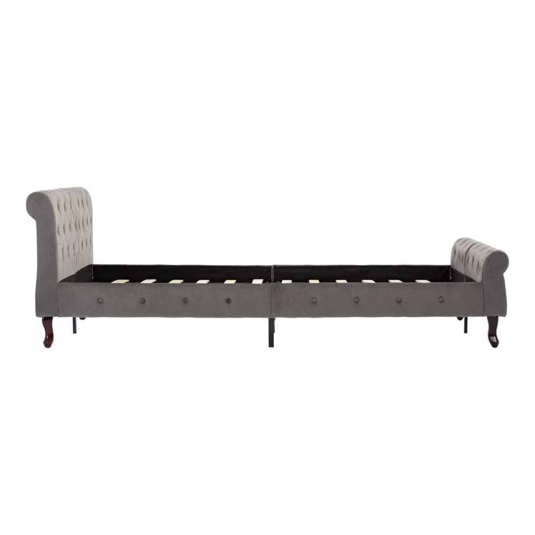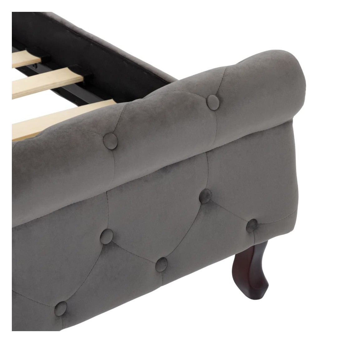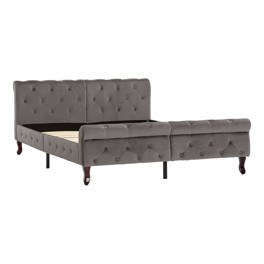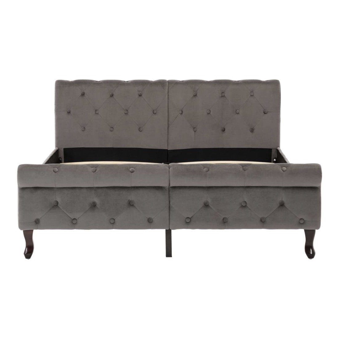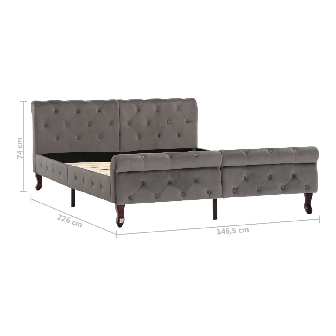 Ce cadre de lit classique deviendra l'attraction principale de votre chambre à coucher. Ce lit ajoute une touche de charme élégant à la décoration de votre chambre à coucher. Fabriqué en contreplaqué et en acier, ce lit rembourré est extrêmement robuste et durable. Les pieds en bois de pin massif ajoutent une durabilité accrue au lit. De plus, recouvert de velours doux, le sommier dégage un aspect accueillant et une touche lisse. Ce cadre de lit est également facile à assembler. Veuillez noter que la livraison inclut un cadre de lit seulement ; un matelas n'est pas inclus. Le lit est facile à assembler. Vous pouvez chercher le matelas correspondant dans notre boutique.