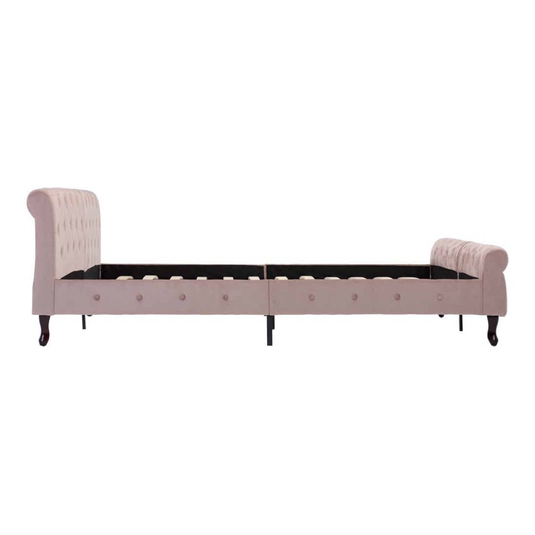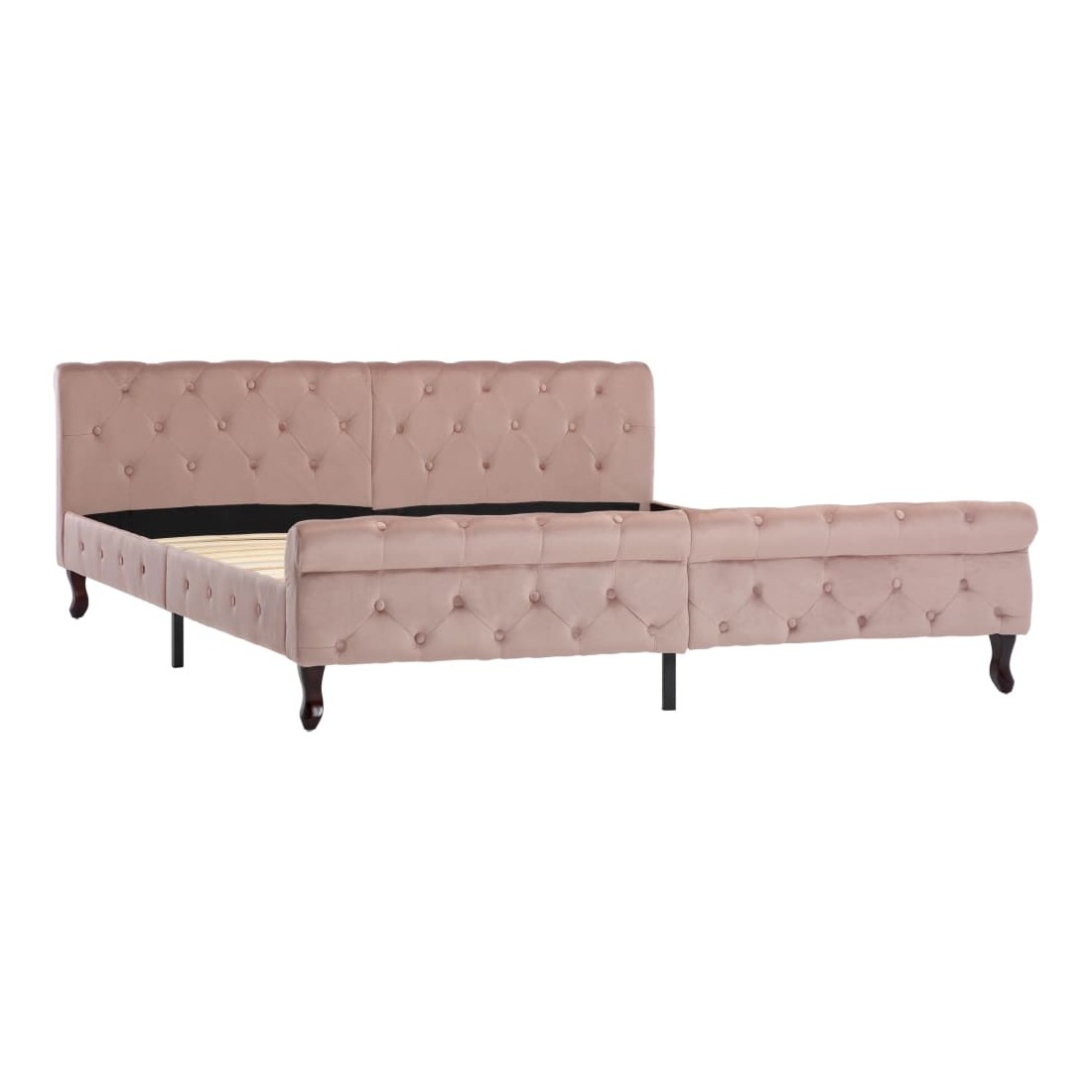 Ce cadre de lit classique deviendra l'attraction principale de votre chambre à coucher. Ce lit ajoute une touche de charme élégant à la décoration de votre chambre à coucher. Fabriqué en contreplaqué et en acier, ce lit rembourré est extrêmement robuste et durable. Les pieds en bois de pin massif ajoutent une durabilité accrue au lit. De plus, recouvert de velours doux, le sommier dégage un aspect accueillant et une touche lisse. Ce cadre de lit est également facile à assembler. Veuillez noter que la livraison inclut un cadre de lit seulement ; un matelas n'est pas inclus. Le lit est facile à assembler. Vous pouvez chercher le matelas correspondant dans notre boutique.
