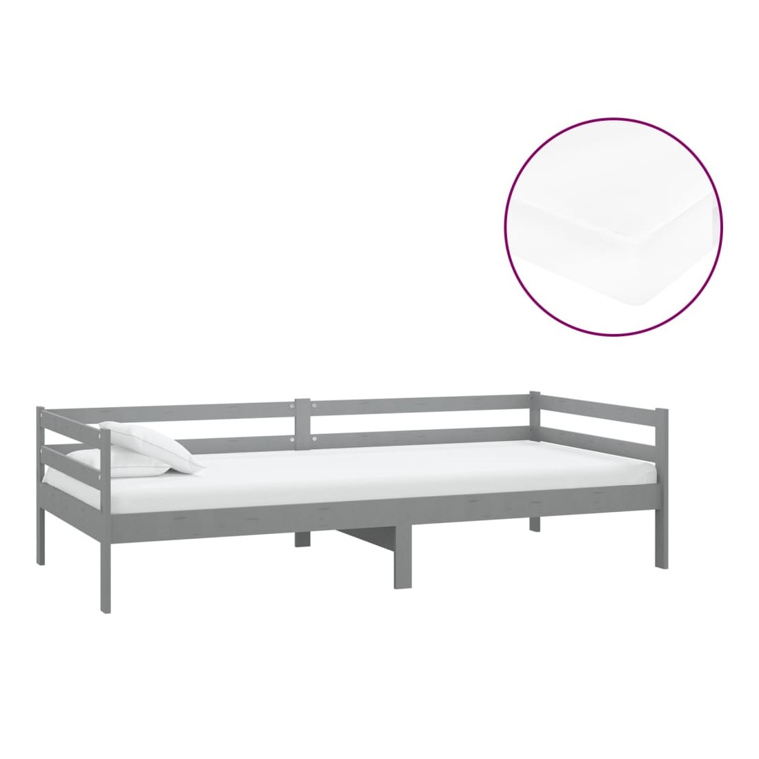 Lit de repos avec matelas 90x200 cm Gris Bois de pin massif
