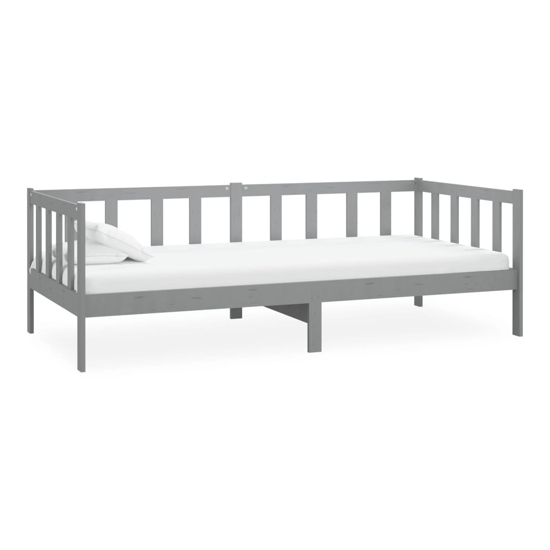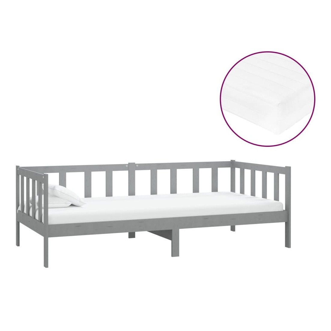 Lit de repos avec matelas 90x200 cm Gris Bois de pin massif