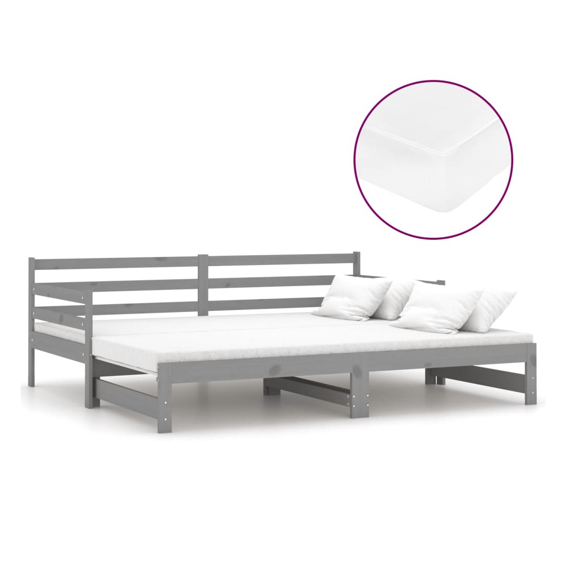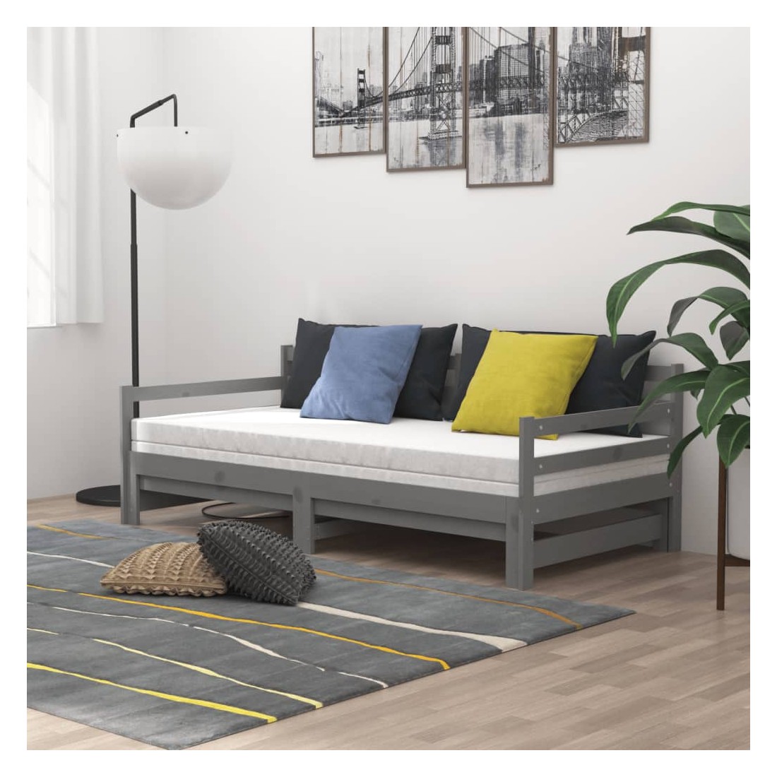 Lit coulissant 2x(90x200) cm Gris Bois de pin massif