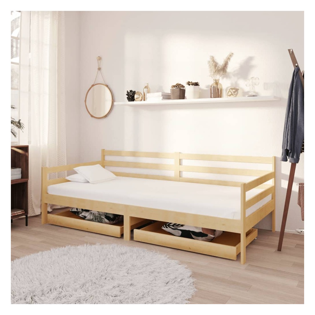 Ce lit en bois est une solution parfaite pour accueillir des invités pour la nuit tout en offrant un espace confortable pour s'asseoir pendant la journée. Le canapé-lit est fait de bois de pin massif, ce qui le rend robuste et stable. Les lattes robustes offrent également le soutien et le confort nécessaires. Vous pouvez toujours profiter d'une bonne nuit de sommeil sur le lit avec un matelas ultra-doux ! Il offre une expérience de sommeil calme et protège également votre santé vertébrale. Nous vous recommandons d'aérer régulièrement le matelas pour prolonger sa durée de vie. Le lit en bois multifonctionnel peut être utilisé comme un canapé pendant la journée, ou comme un lit pendant la nuit pour offrir une solution rapide pour accueillir des invités pour la nuit. Ce canapé-lit pratique saura attirer tous les regards, où qu'il sera placé ! Remarque importante : vous ne pouvez pas retourner le matelas pour des raisons d'hygiène si la housse de matelas a été ouverte ou retirée.