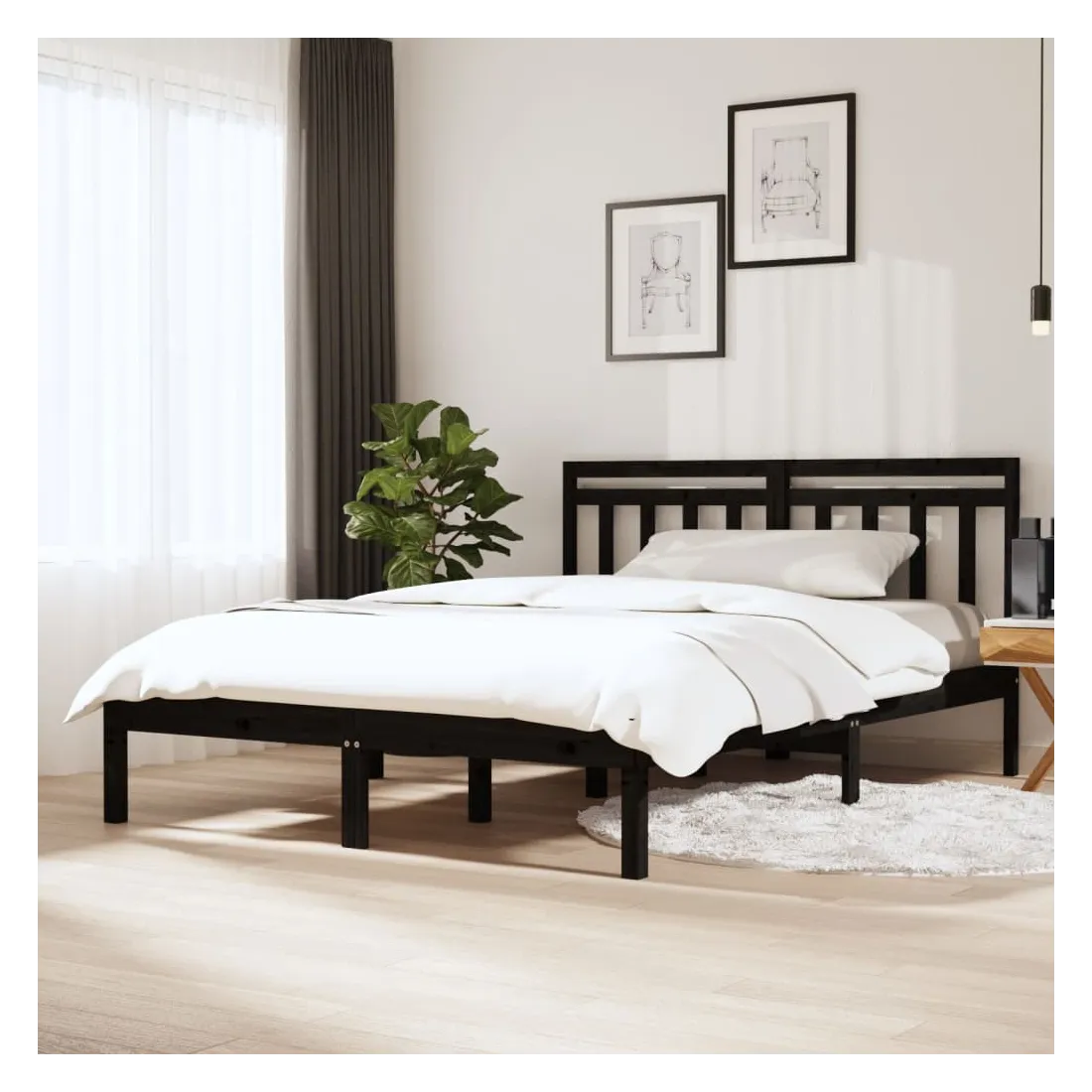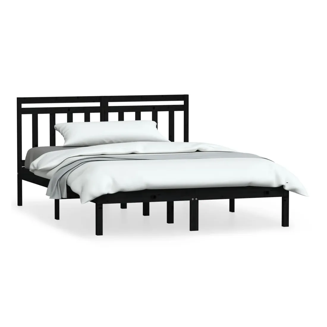 Cadre de lit sans matelas noir bois massif 140x190 cm