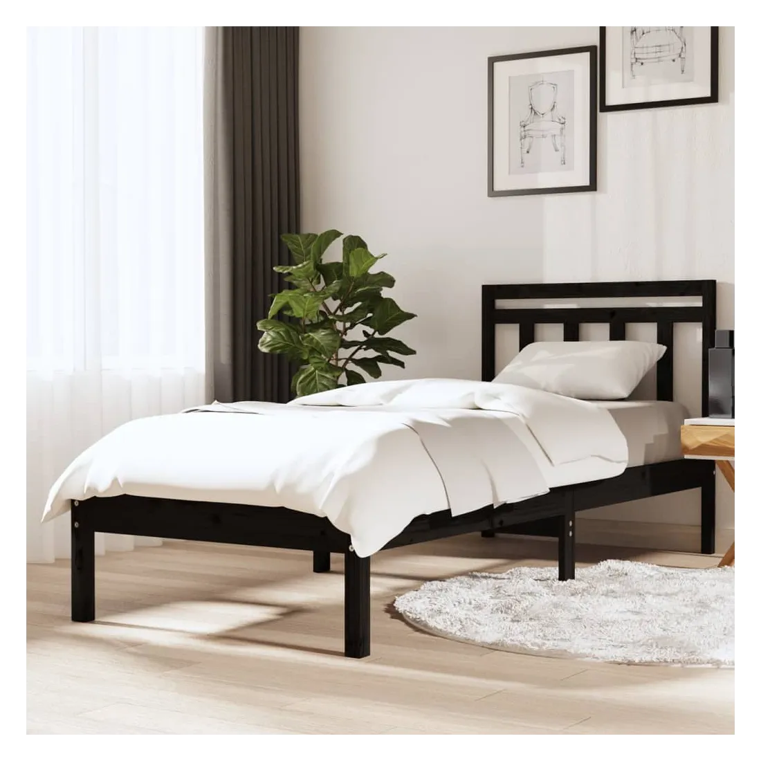 Cadre de lit sans matelas noir bois massif 100x200 cm