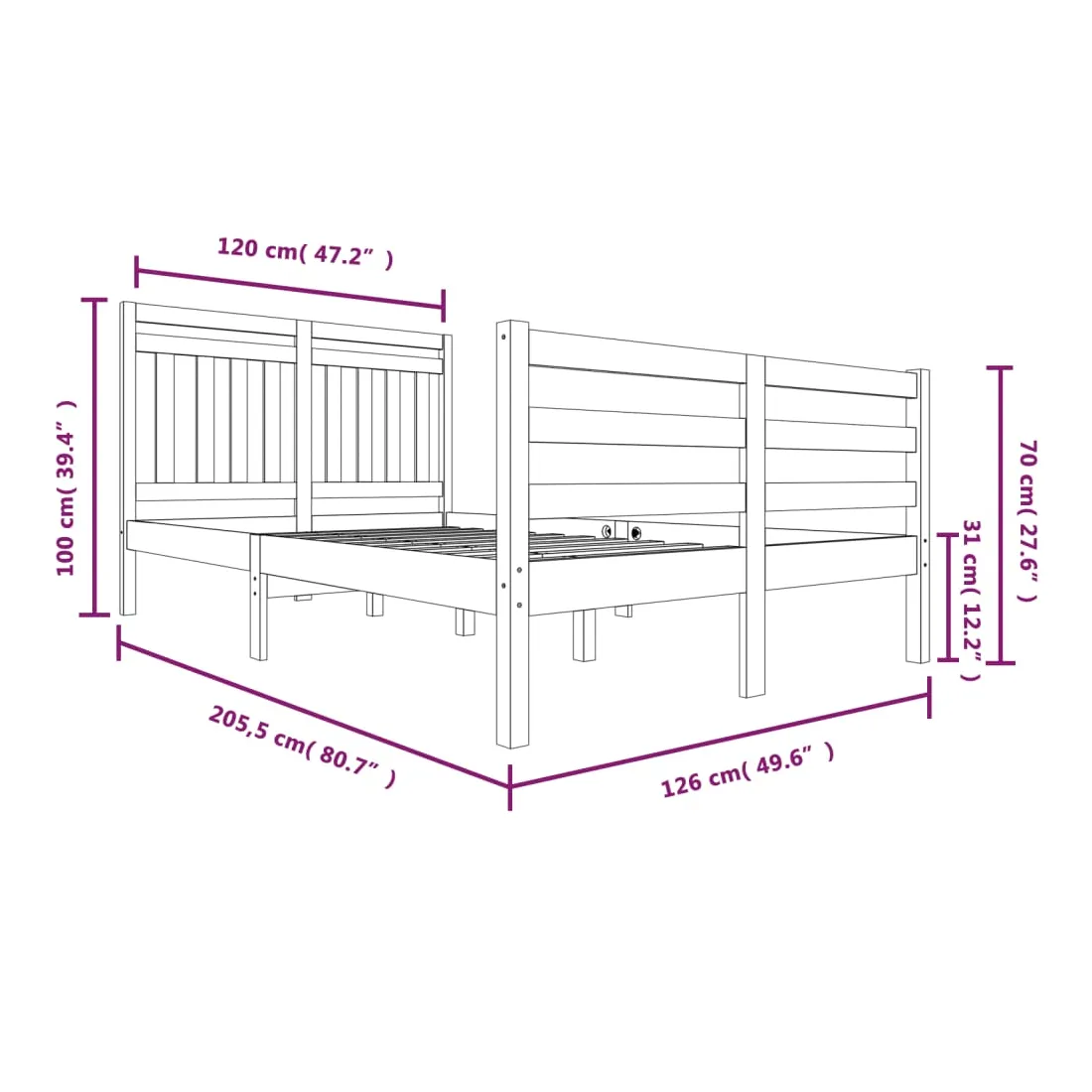 • Dimensions totales du cadre de lit : 205,5 x 126 x 100 cm (L x l x H)