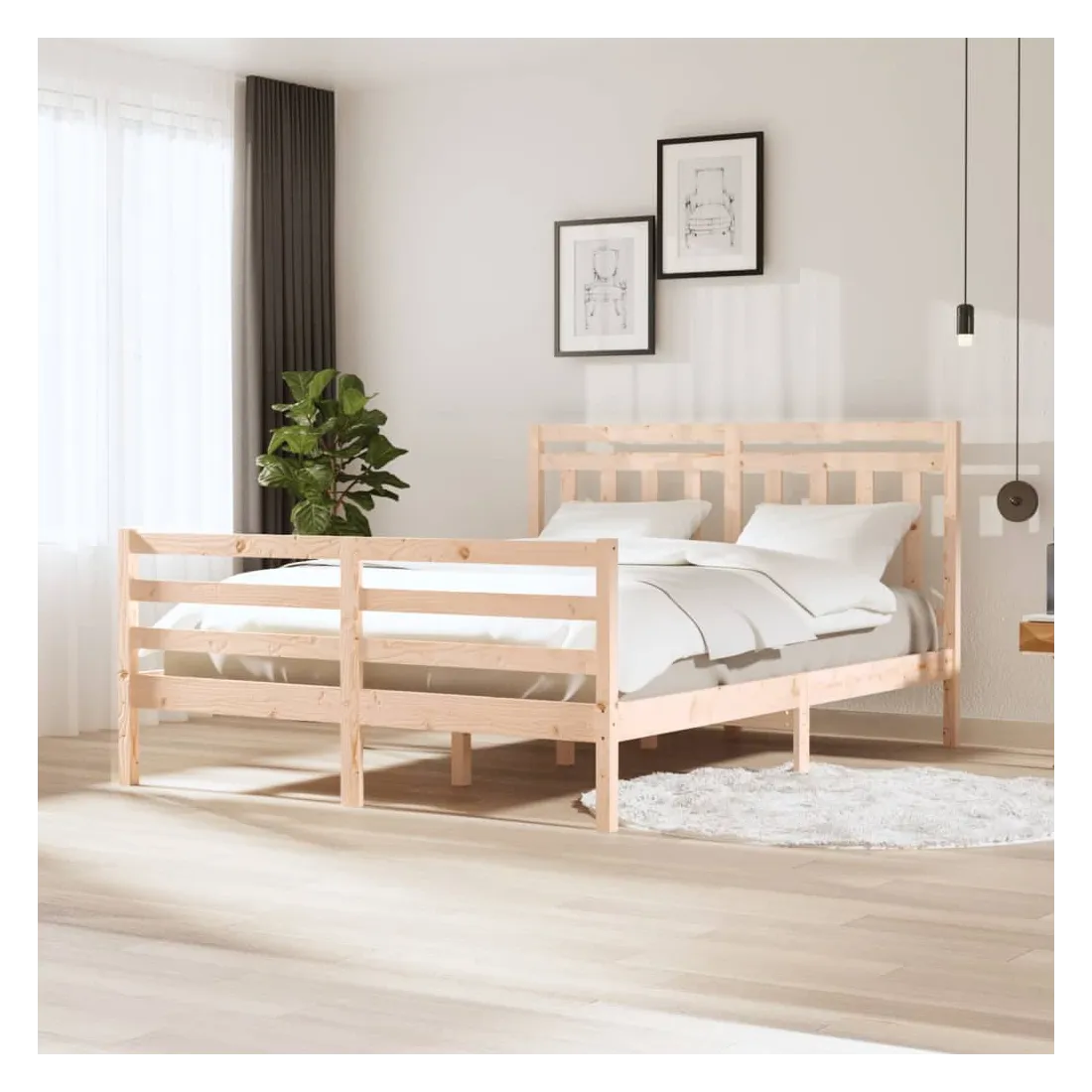 Avec un design simple mais intemporel, ce cadre de lit sera un supplément vraiment pratique et décoratif à votre chambre à coucher. Matériau de première qualité : le bois de pin massif est un matériau naturel magnifique. Le bois de pin a un grain droit et les nœuds donnent au matériau son aspect caractéristique et rustique.Cadre robuste et stable : le cadre en bois assure robustesse et stabilité. Les lattes apportent un soutien supplémentaire à votre lit. Il prolonge la durée de vie de votre matelas en absorbant la majeure partie du stress et du poids sur le lit.Design accrocheur : la conception de la tête et du pied de lit est à la fois décorative et pratique. Il ajoute un style et un confort uniques. Bon à savoir :Le matelas n'est pas inclus. Vous pouvez consulter notre boutique pour trouver les matelas assortis.Certaines pièces de tête de lit sont emballées dans les cartons du cadre de lit en raison du manque d’espace.Ce cadre de lit convient à un matelas mesurant 150 x 200 cm (très grand).