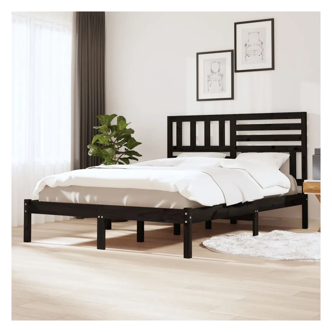 Cadre de lit sans matelas noir 150x200 cm bois de pin massif