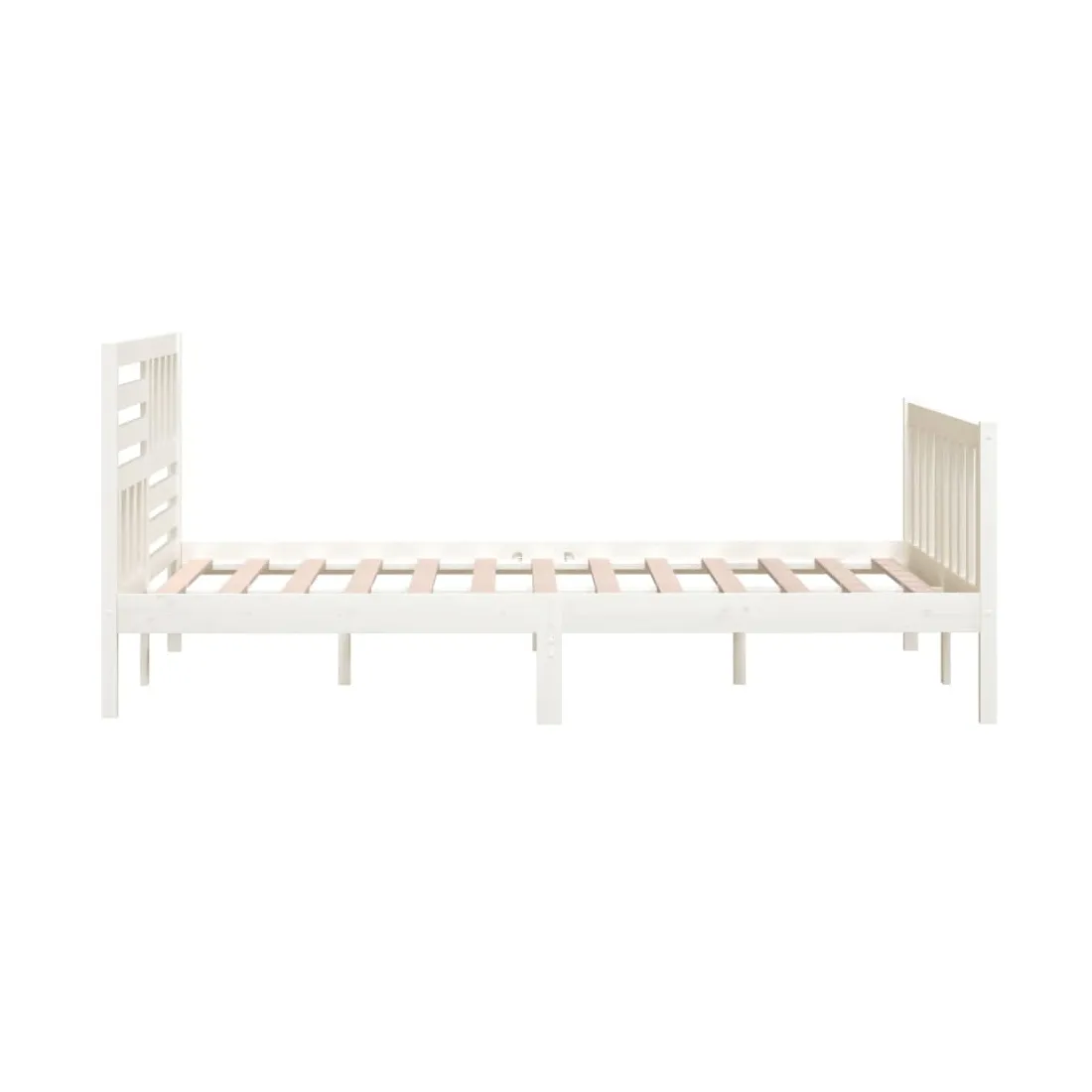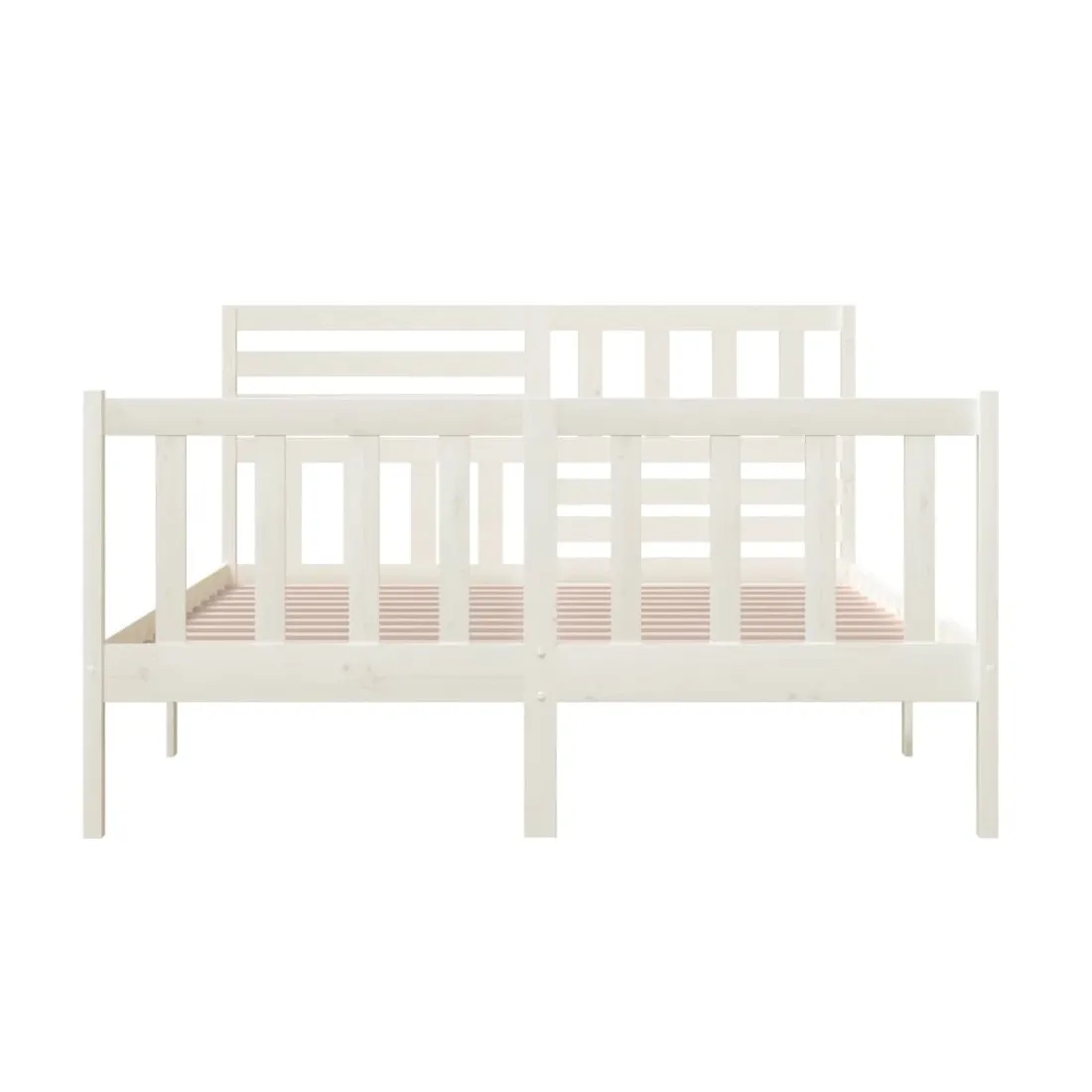Avec un design simple mais intemporel, ce cadre de lit sera un supplément vraiment pratique et décoratif à votre chambre à coucher. Matériau de première qualité : le bois de pin massif est un matériau naturel magnifique. Le bois de pin a un grain droit et les nœuds donnent au matériau son aspect caractéristique et rustique. Cadre robuste et stable : le cadre en bois assure robustesse et stabilité. Les lattes en pin massif apportent un soutien supplémentaire à votre lit. Il prolonge la durée de vie de votre matelas en absorbant la majeure partie du stress et du poids sur le lit.Design accrocheur : la conception de la tête et du pied de lit est à la fois décorative et pratique. Il ajoute un style et un confort uniques. Remarque :Le matelas n'est pas inclus. Vous pouvez consulter notre boutique pour trouver les matelas assortis.Ce cadre de lit convient à un matelas mesurant 150 x 200 cm (très grand).