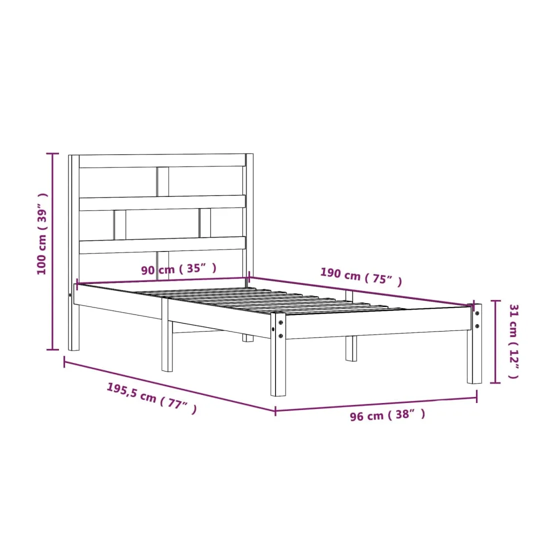 Prenez le chemin moderne vers votre chambre à coucher cool avec ce cadre de lit en bois ! Il constitue un supplément pratique et décoratif à votre intérieur. Matériau de première qualité : le bois de pin massif est un matériau naturel magnifique. Le bois de pin a un grain droit et les nœuds donnent au matériau son aspect caractéristique et rustique.Lattes robustes : les lattes de contreplaqué assurent une bonne répartition du poids, garantissant que le matelas reste en place à chaque torsion de votre corps pendant le sommeil.Tête de lit confortable : la tête de lit classique vous permet de vous reposer confortablement lorsque vous lisez ou regardez un film. Bon à savoir :La livraison comprend uniquement un cadre de lit. Le matelas n'est pas inclus. Vous pouvez consulter notre boutique pour trouver les matelas assortis.Certaines pièces de tête de lit sont emballées dans les cartons du cadre de lit en raison du manque d’espace.Ce cadre de lit convient à un matelas mesurant 90 x 190 cm (simple).