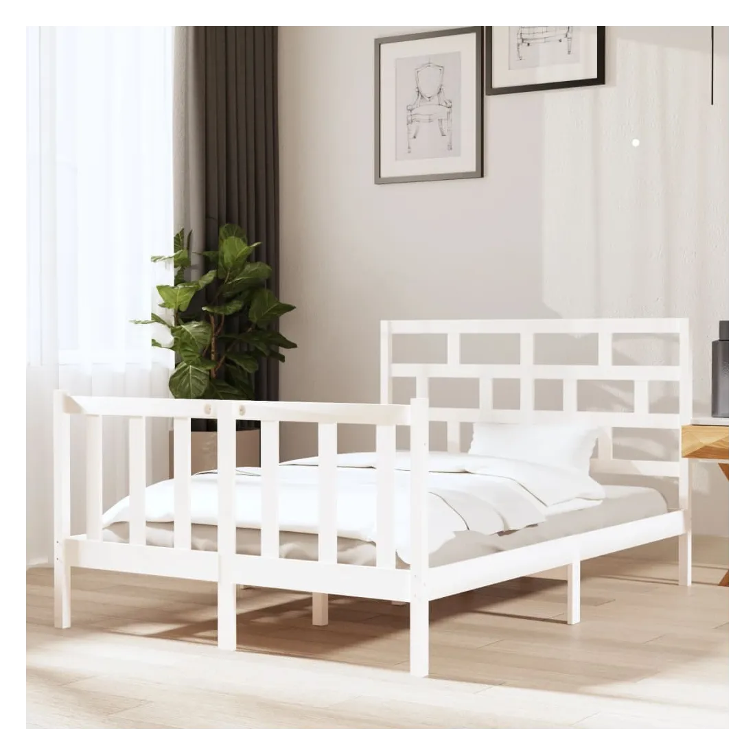 Prenez le chemin moderne vers votre chambre à coucher cool avec ce cadre de lit en bois ! Il constitue un supplément pratique et décoratif à votre intérieur. Matériau de première qualité : le bois de pin massif est un matériau naturel magnifique. Le bois de pin a un grain droit et les nœuds donnent au matériau son aspect caractéristique et rustique.Cadre robuste et stable : le cadre en bois assure robustesse et stabilité.Tête de lit confortable : la tête de lit classique vous permet de vous reposer confortablement lorsque vous lisez ou regardez un film.Design accrocheur : la conception de la tête et du pied de lit est à la fois décorative et pratique. Il ajoute un style et un confort uniques. Remarque :La livraison comprend uniquement un cadre de lit. Le matelas n'est pas inclus. Vous pouvez consulter notre boutique pour trouver les matelas assortis.Ce cadre de lit convient à un matelas mesurant 135 x 190 cm (double).